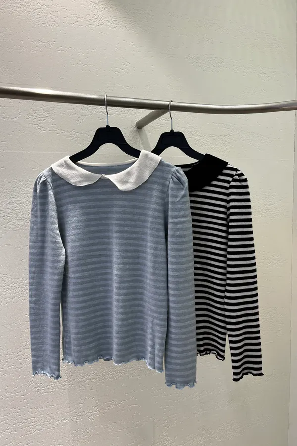 A08 可愛溫柔都有 領設計條紋上衣