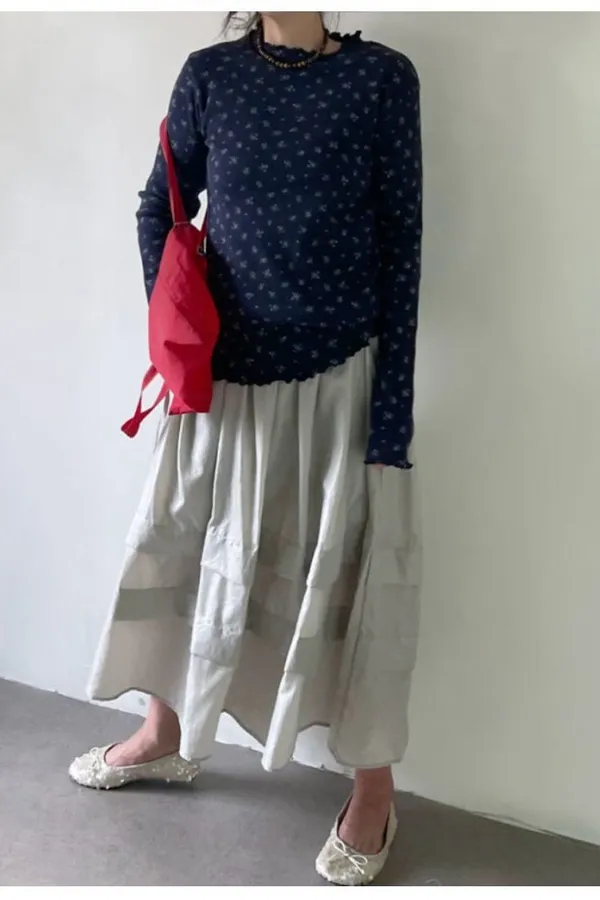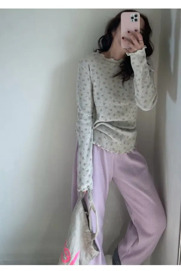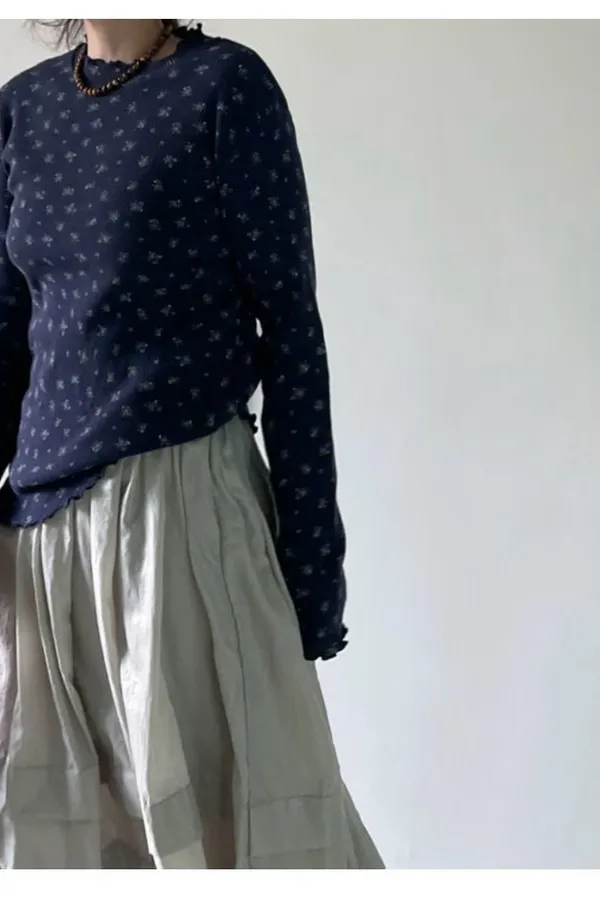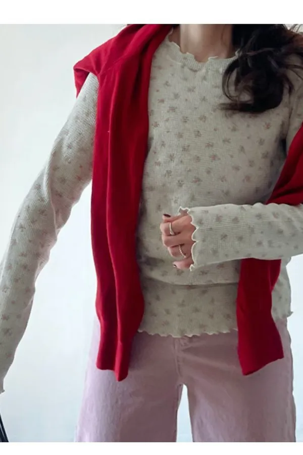 K12 單穿打底都可以 滿版花花滾邊上衣