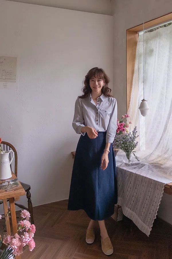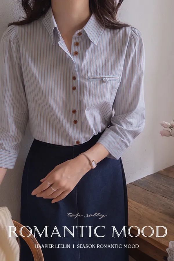 K15 雙扣設計直條襯衫