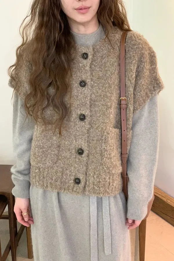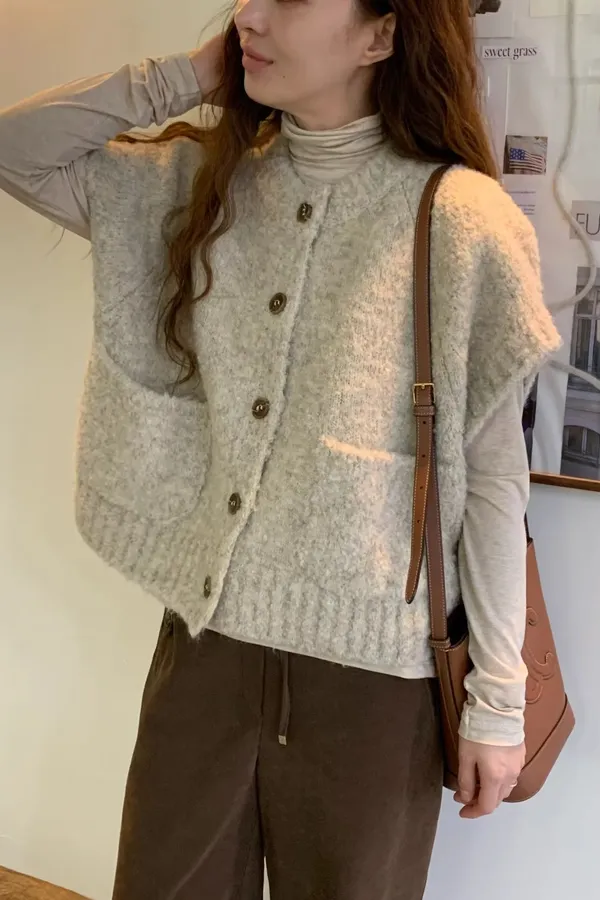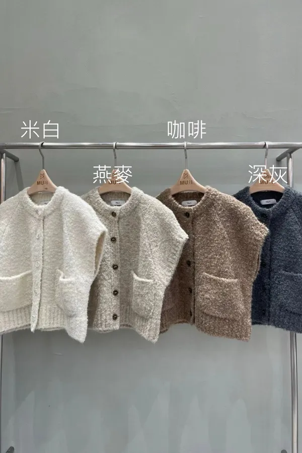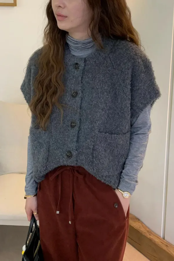 M08 QQ毛大口袋落肩羊毛背心