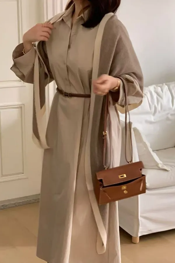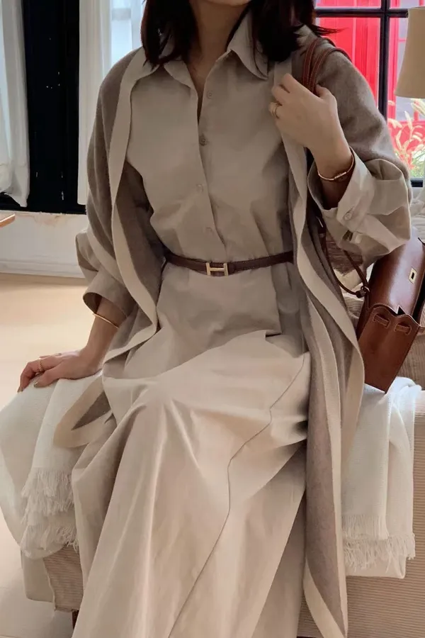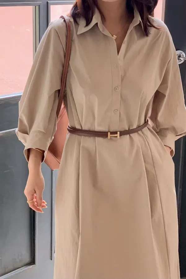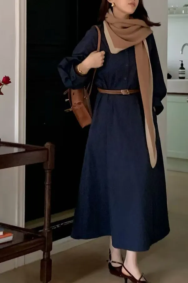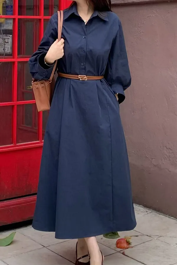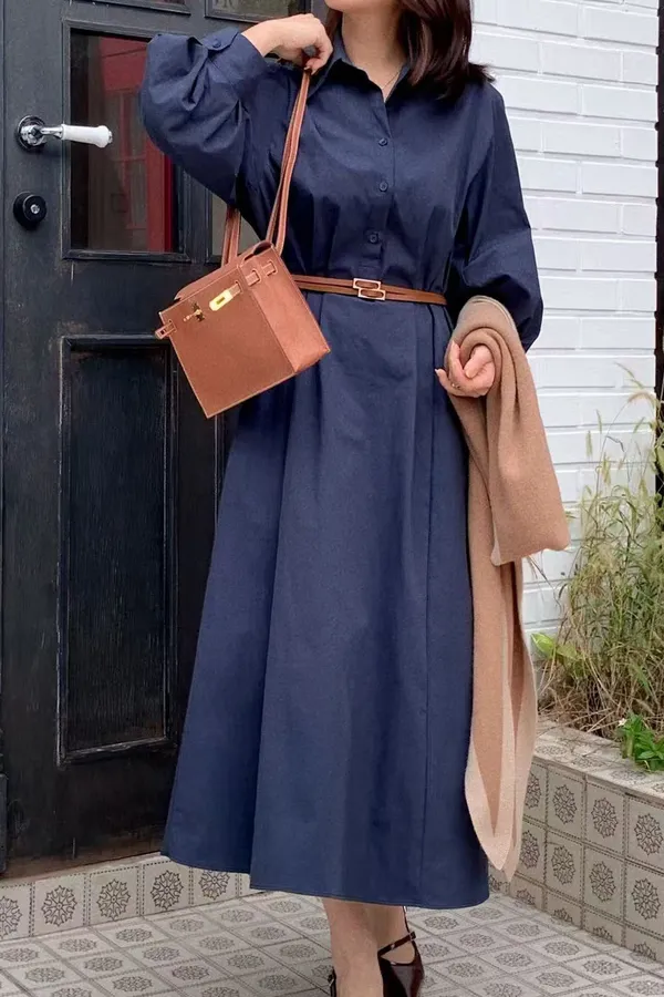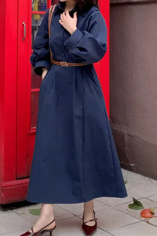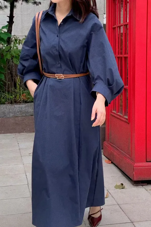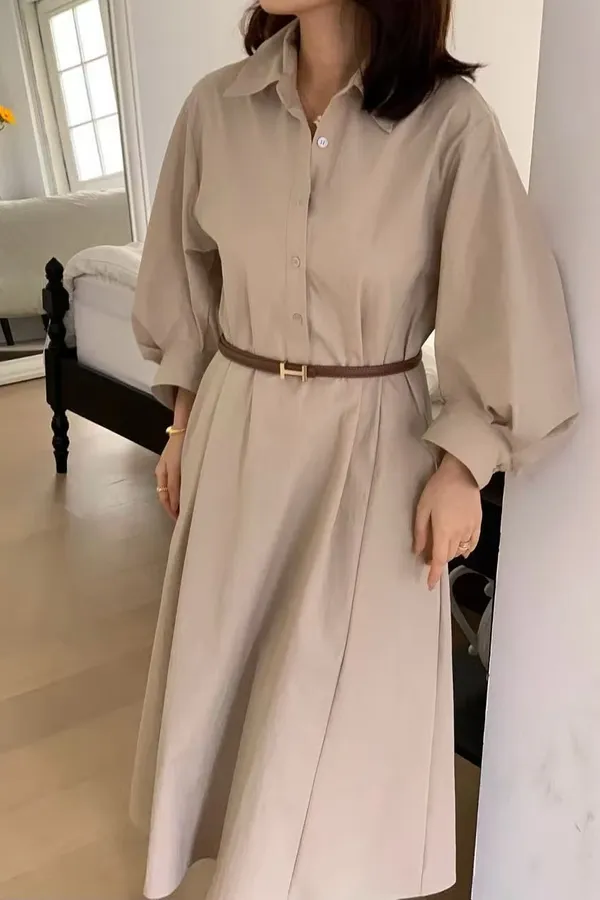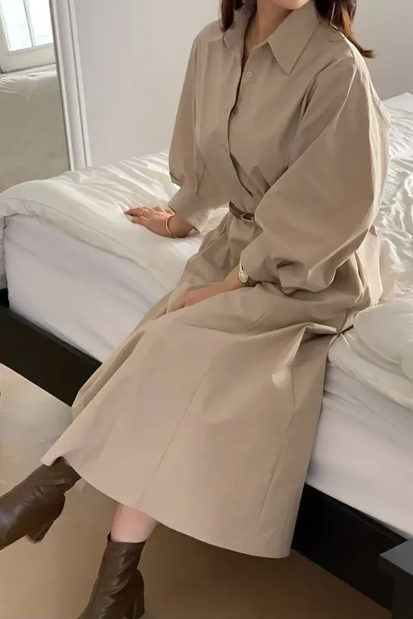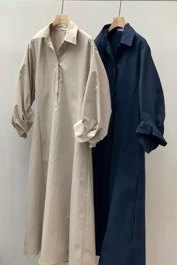 U11 澎澎袖開襟長版洋裝