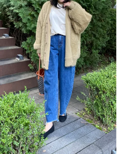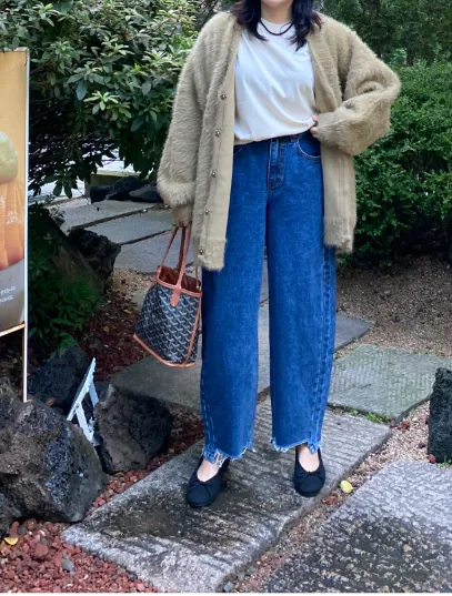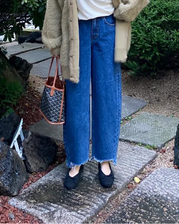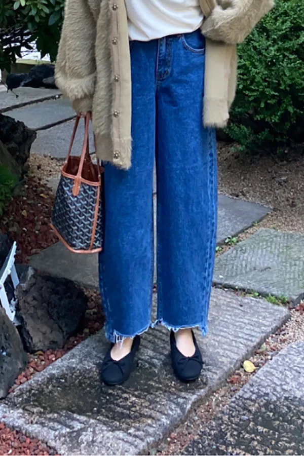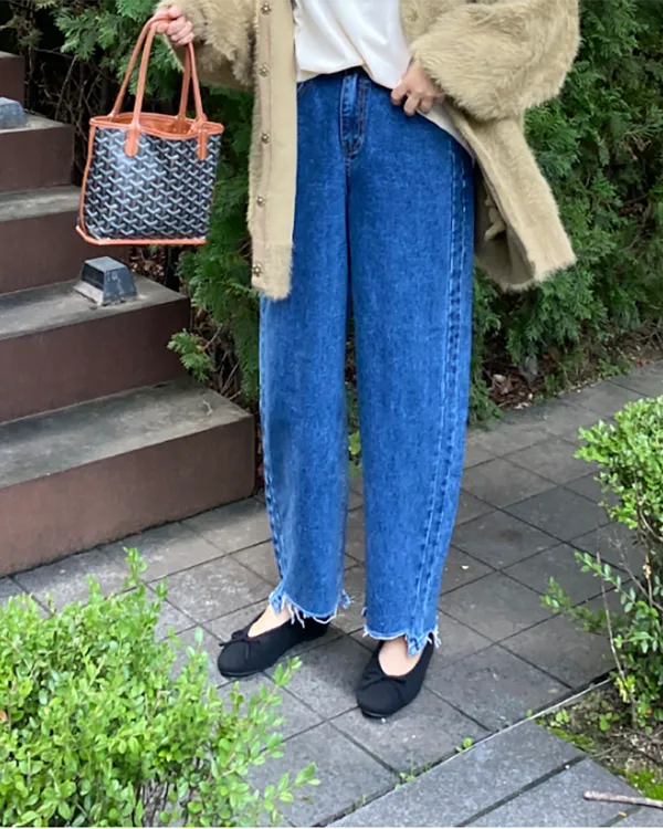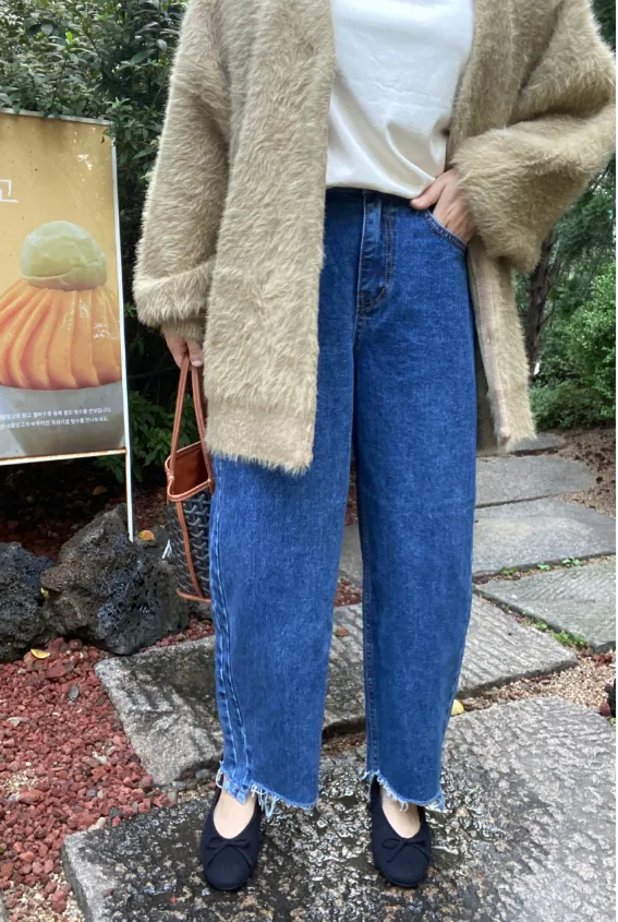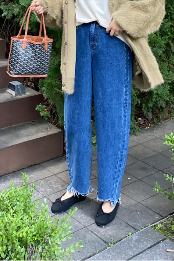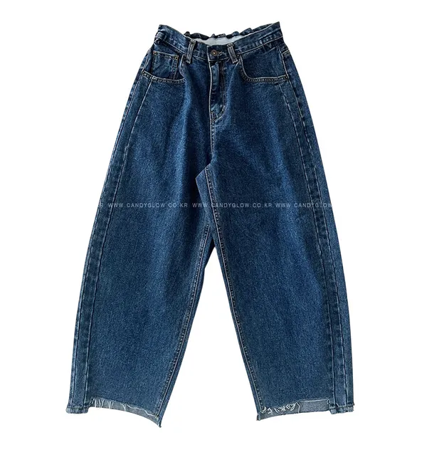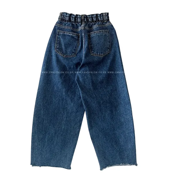L01 下擺缺口造型腰鬆緊牛仔褲