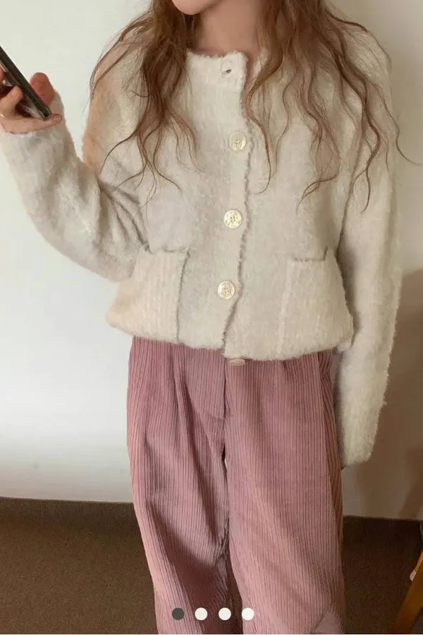 L04 大鈕扣口袋QQ毛上衣外套