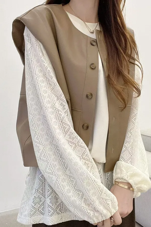 F04 帥氣好搭 排扣皮革背心