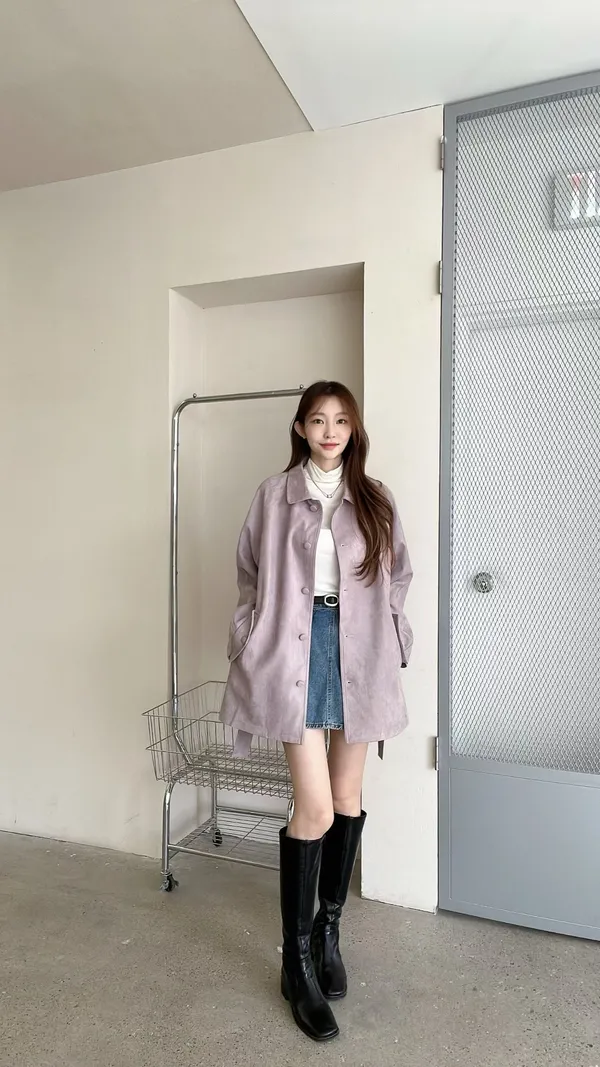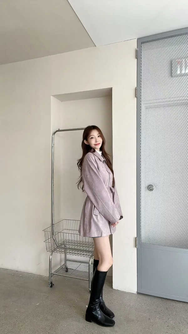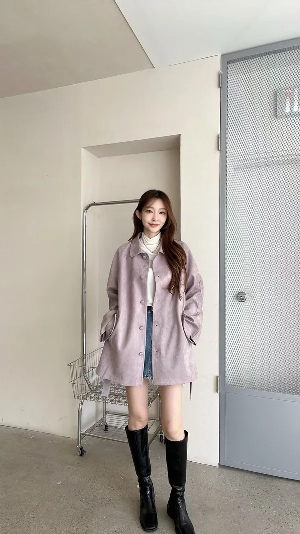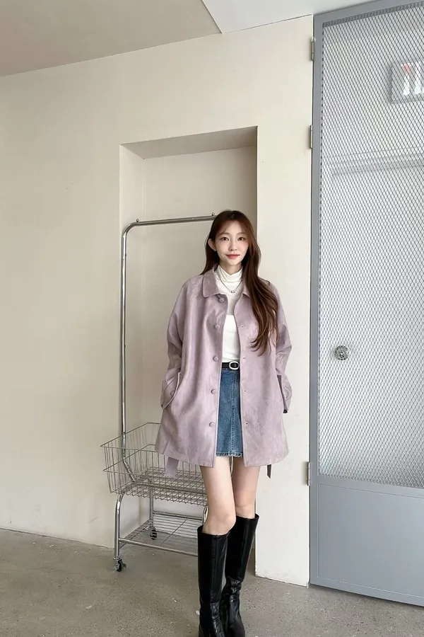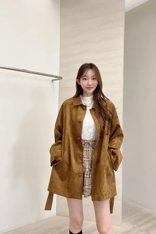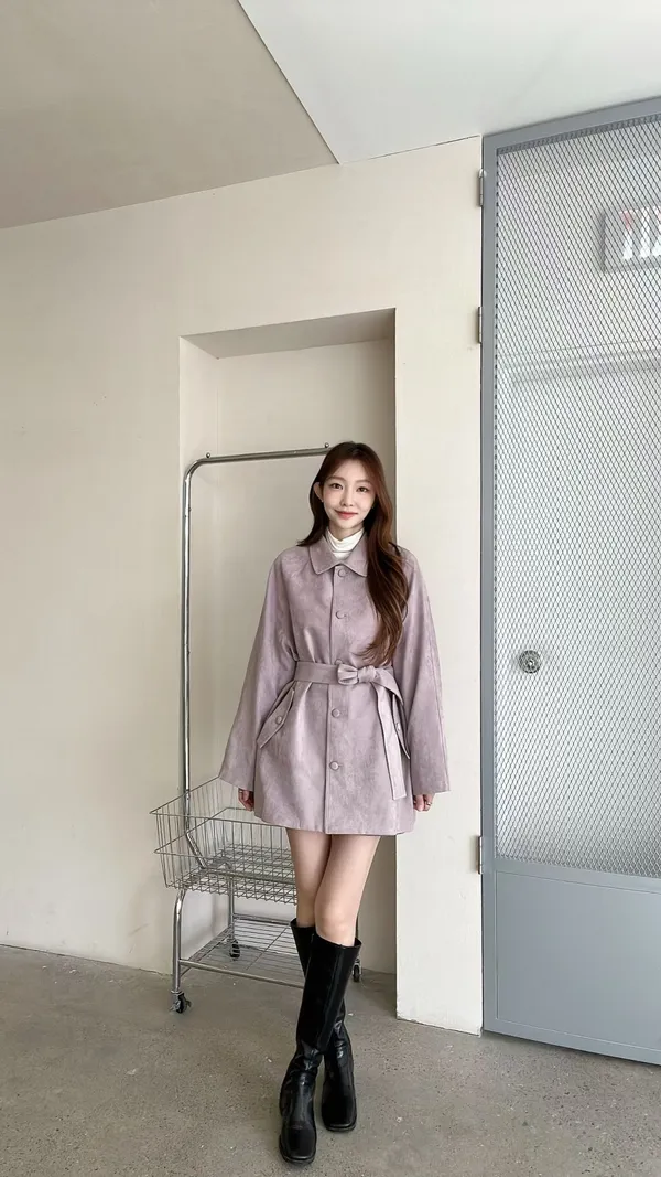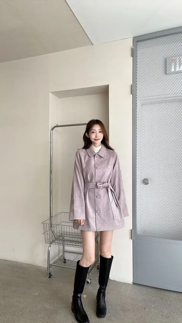 F06 麂皮綁帶中長版風衣外套