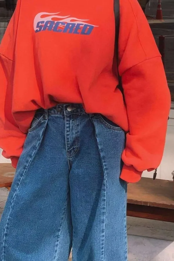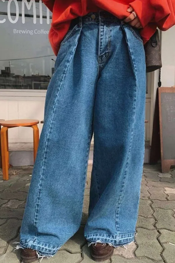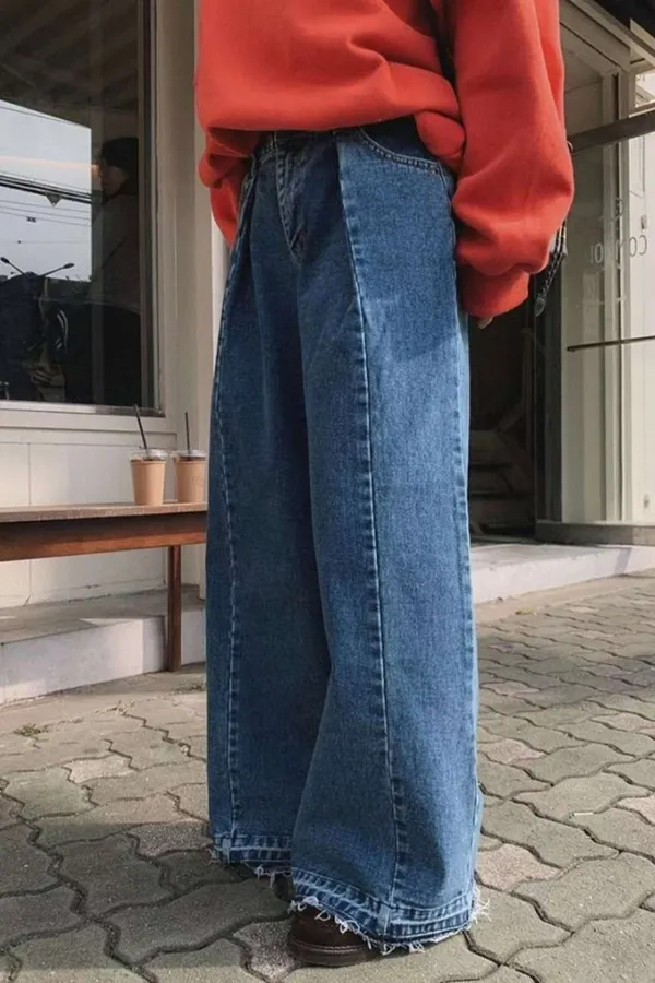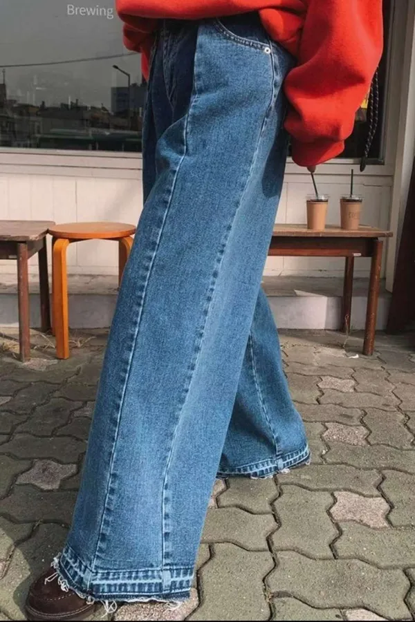 E03 設計感滿滿 挺版落地牛仔寬褲