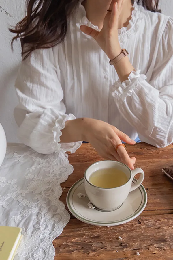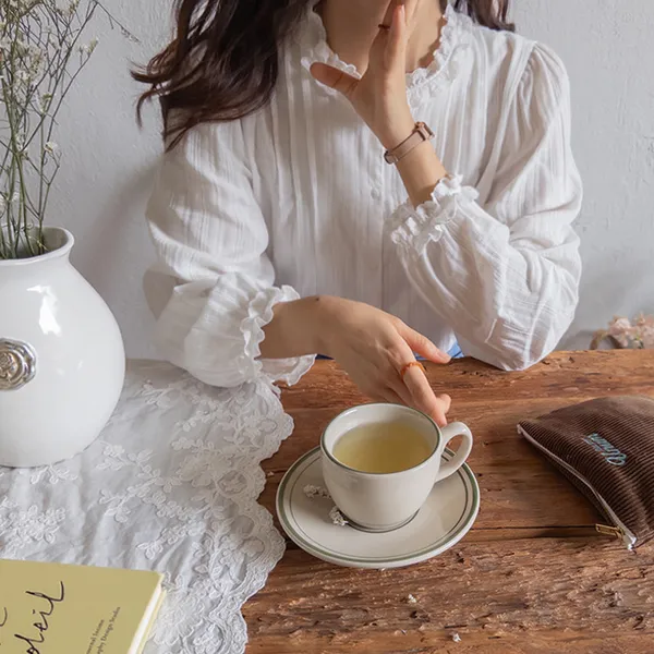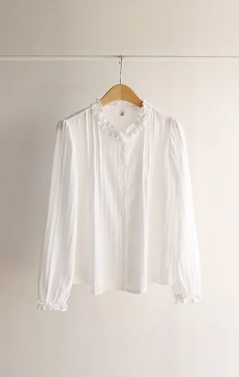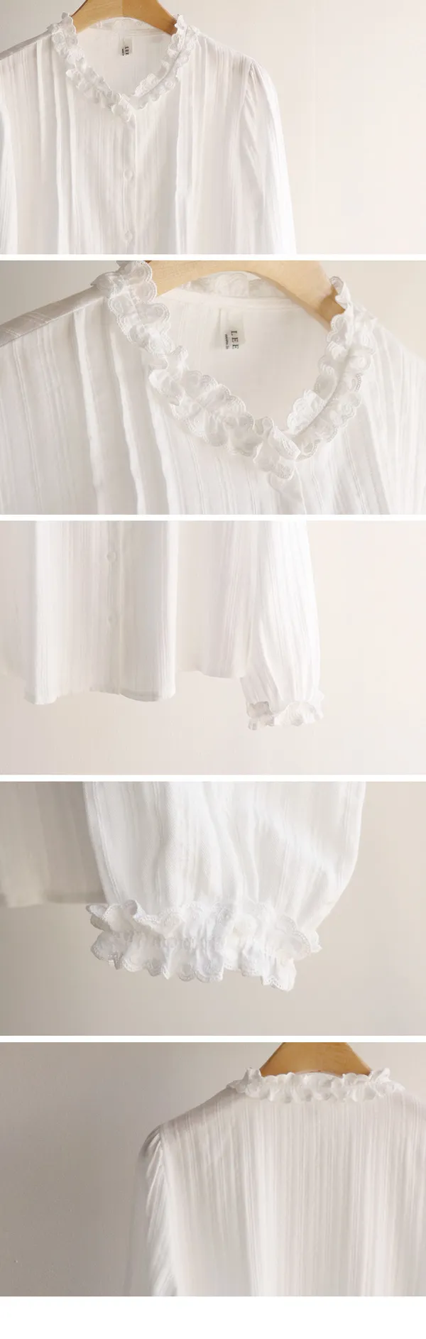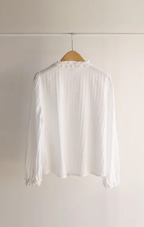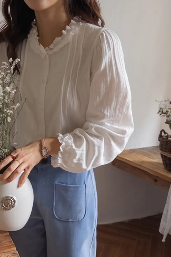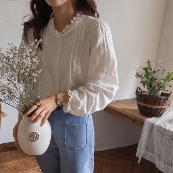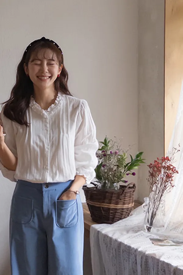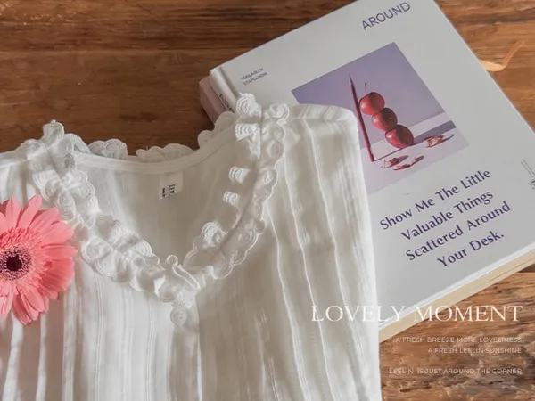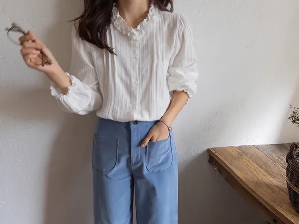E05 韓國網拍熱賣no.1 浪漫滾邊設計 壓紋上衣