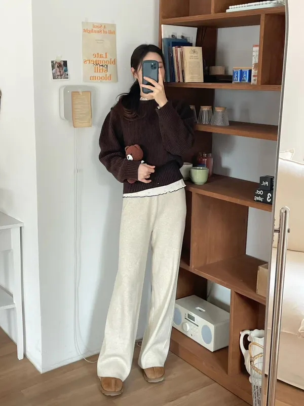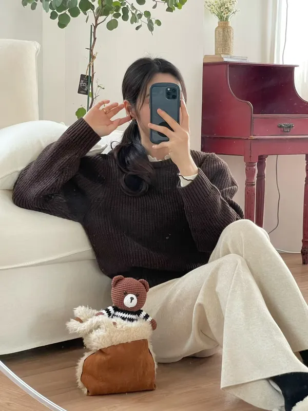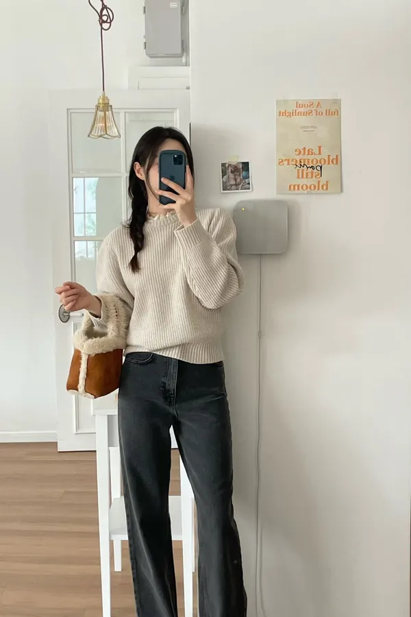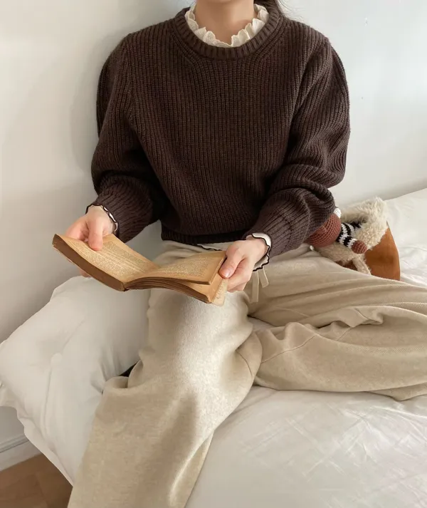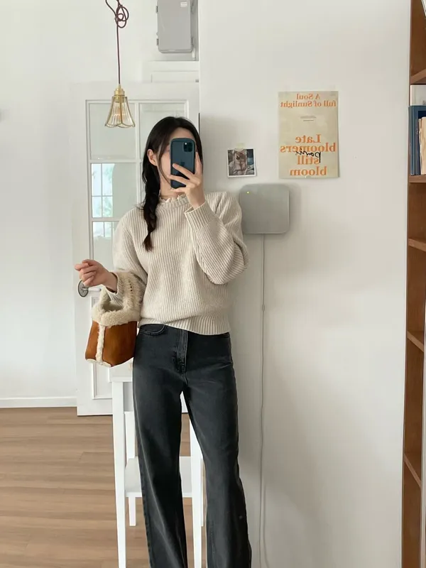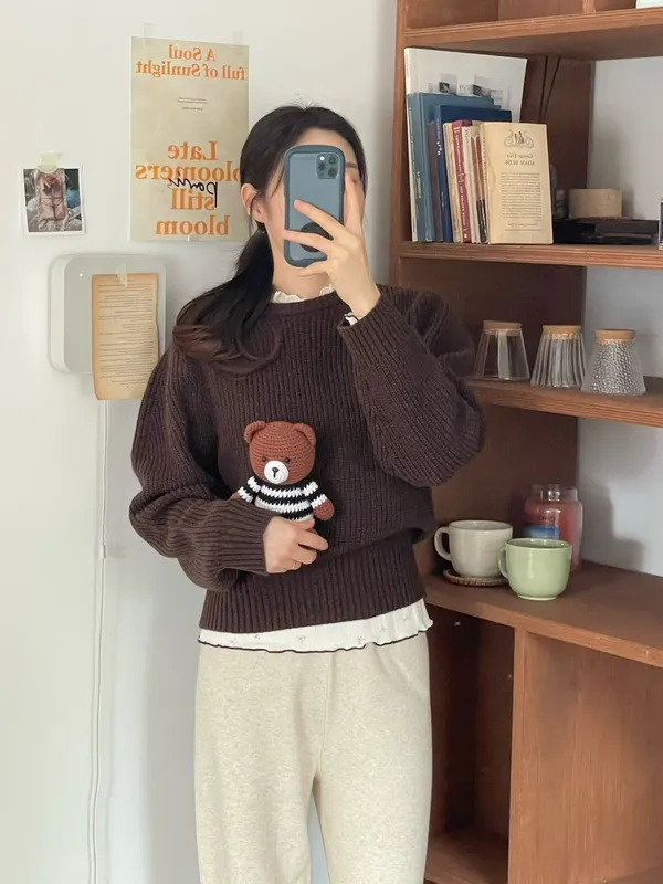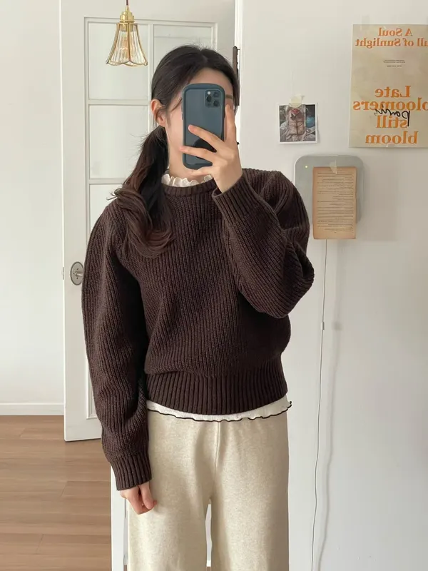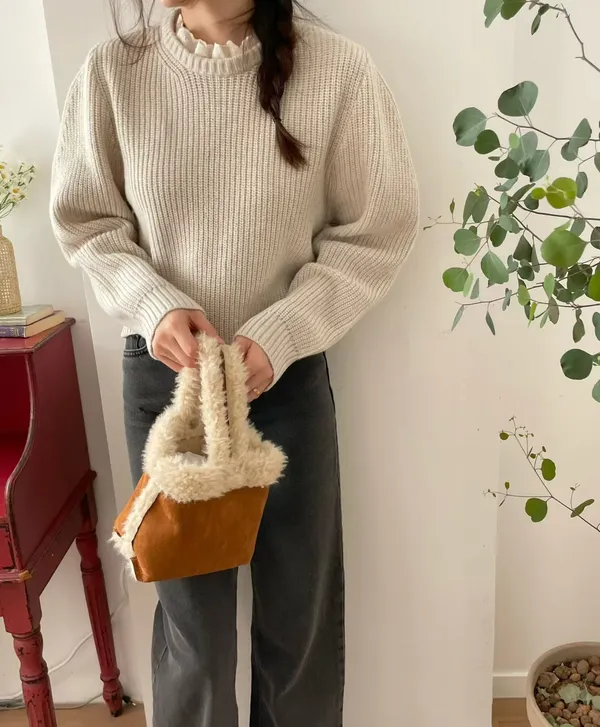 K08 坑條澎澎袖蕾絲假兩件上衣