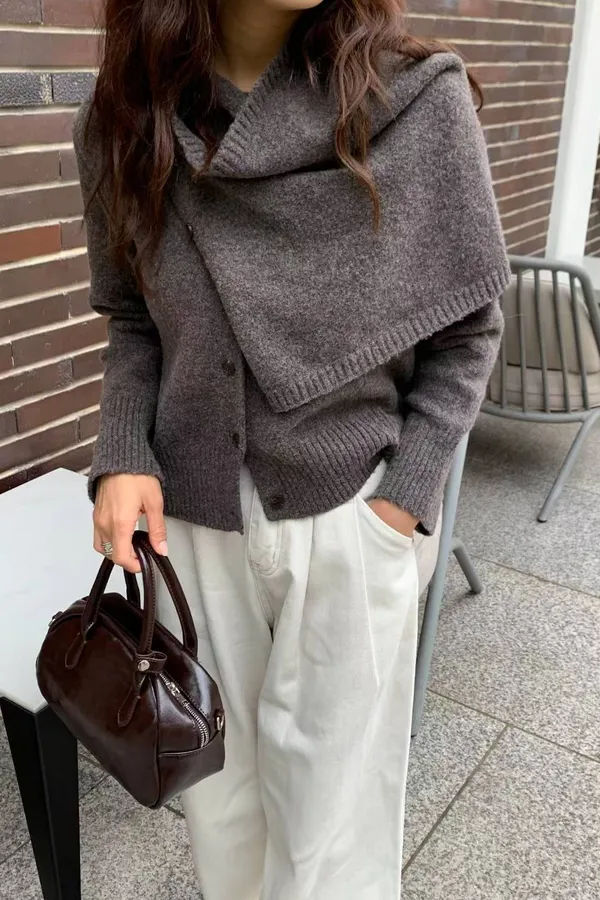 K19 有心機 設計感毛料上衣外套(附領巾)