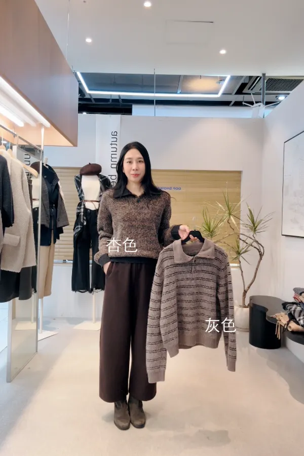 B03 品牌感 高工藝 配色排扣小高領上衣
