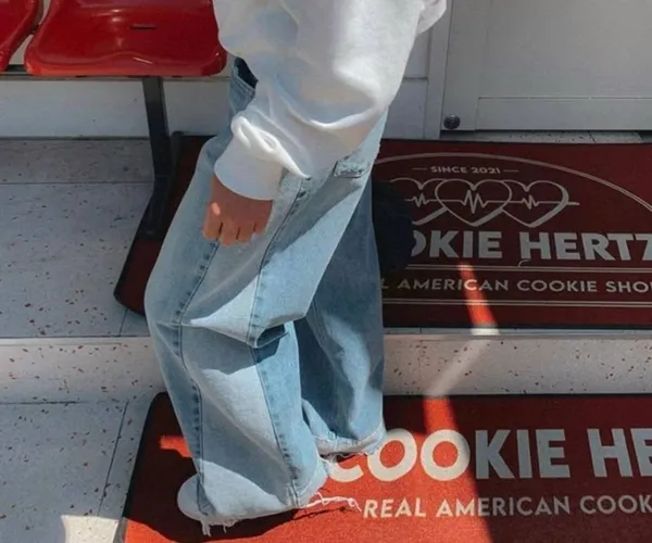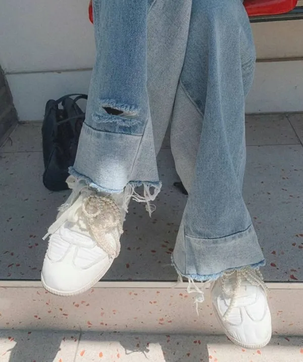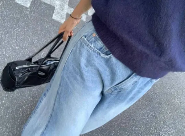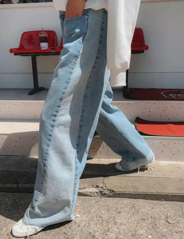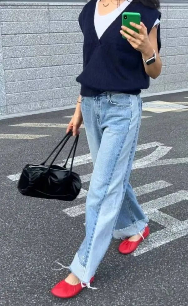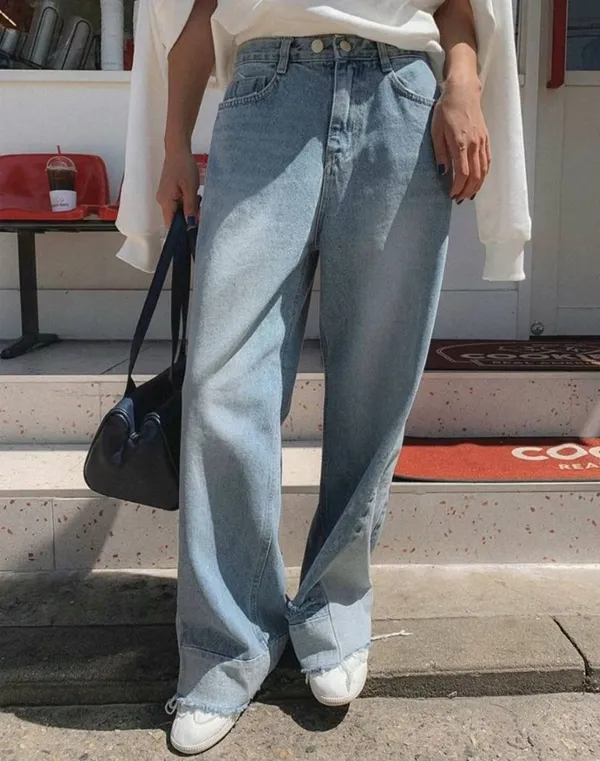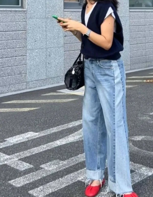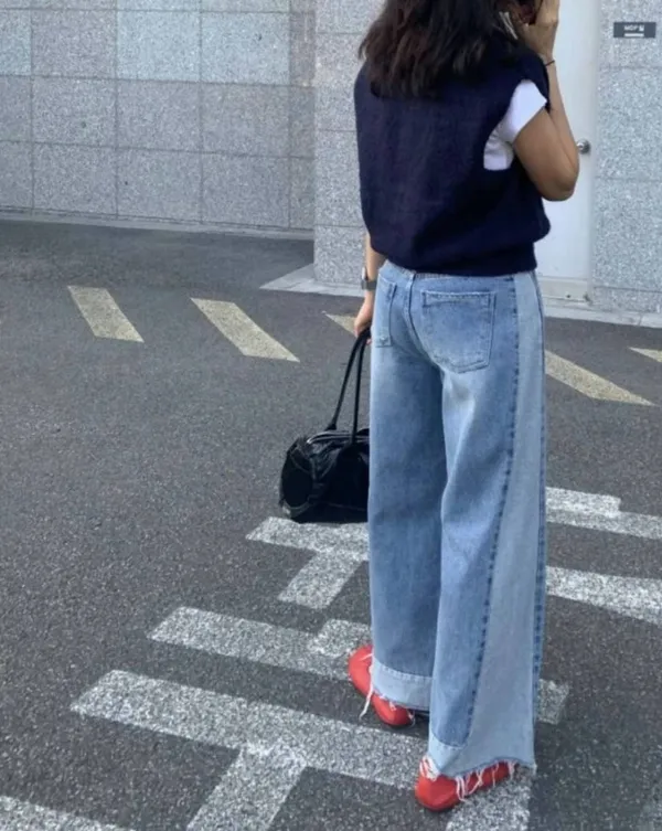 A06 時尚感 拼接落地寬褲