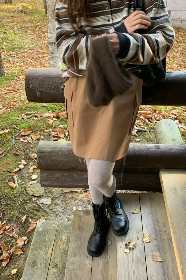 V10 工裝風後鬆緊裙