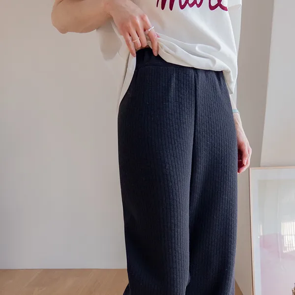 S23 好搭 腰鬆緊 內刷毛坑條休閒褲
