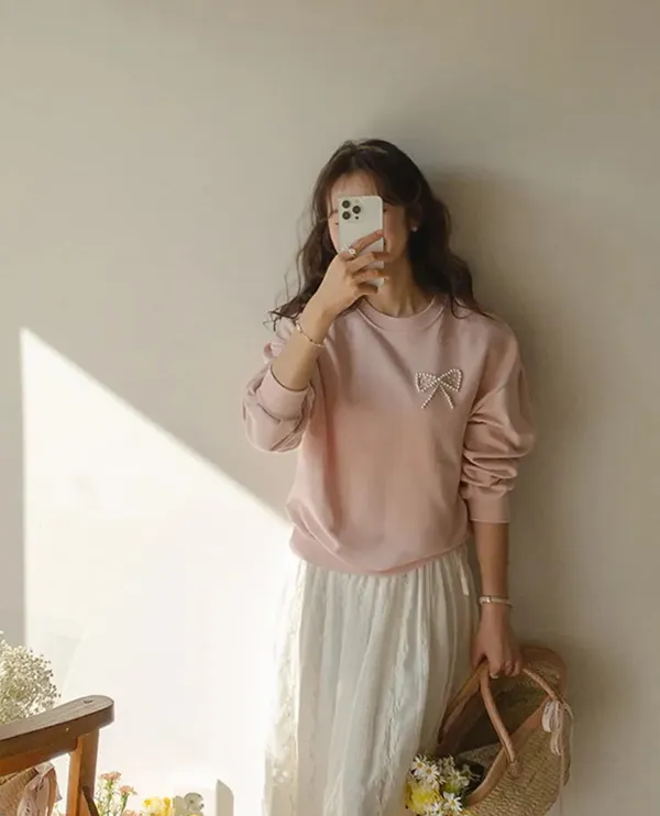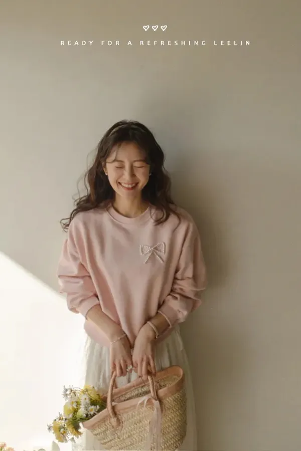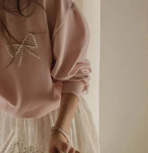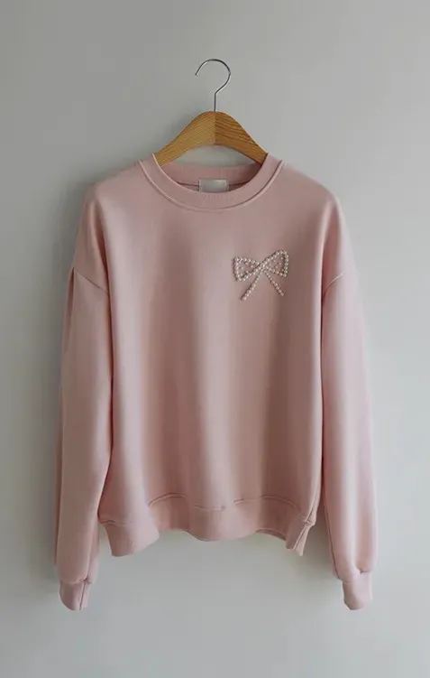 S34 可愛蝴蝶結點綴珍珠裝飾上衣