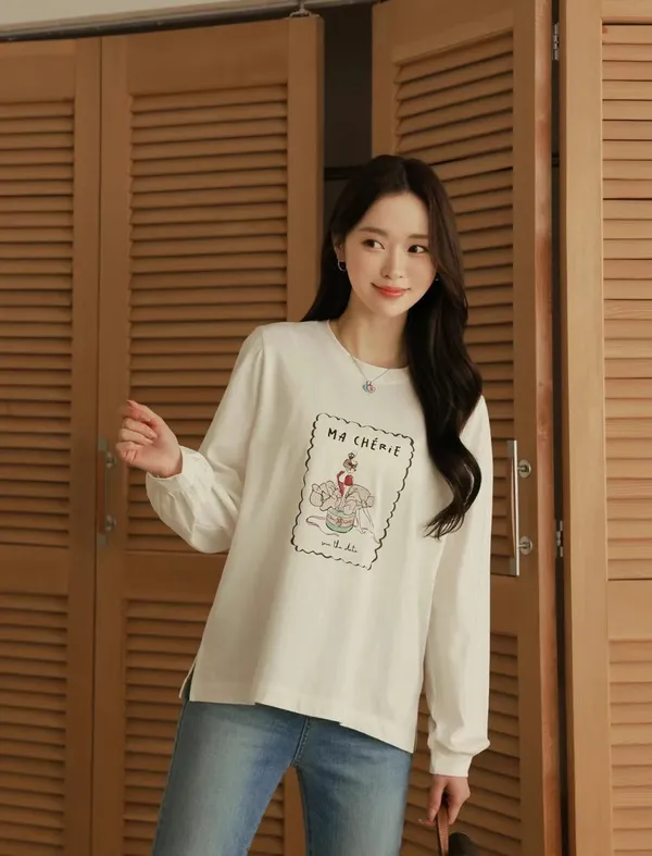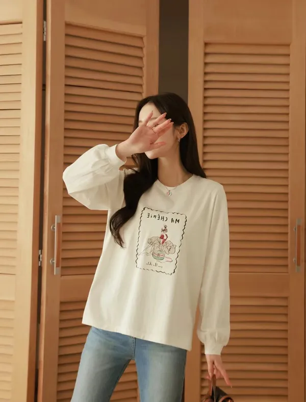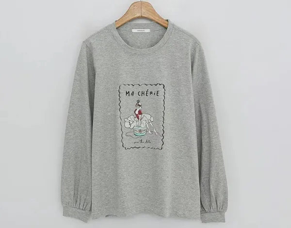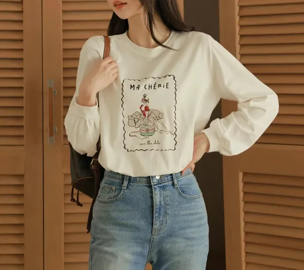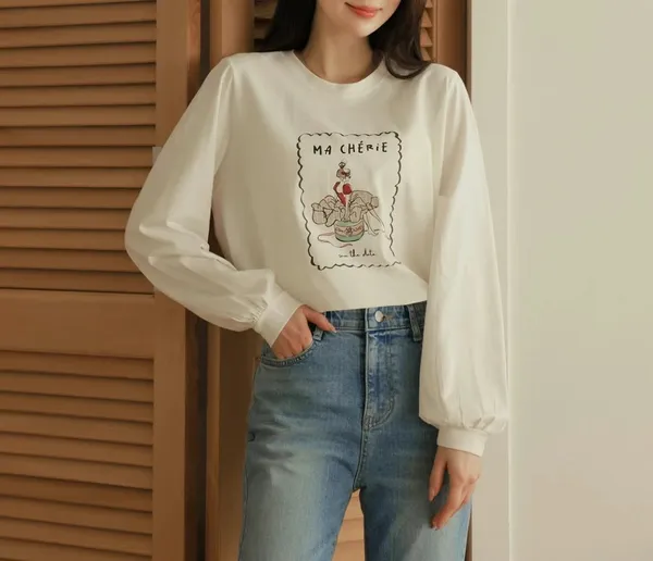 V14 法式 芭蕾舞圖案縮口袖上衣