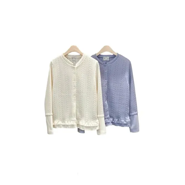 V22 可甜可鹹 下擺波浪雙扣薄針織上衣
