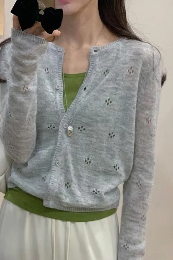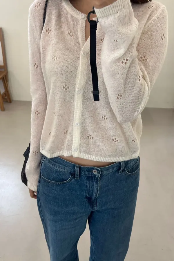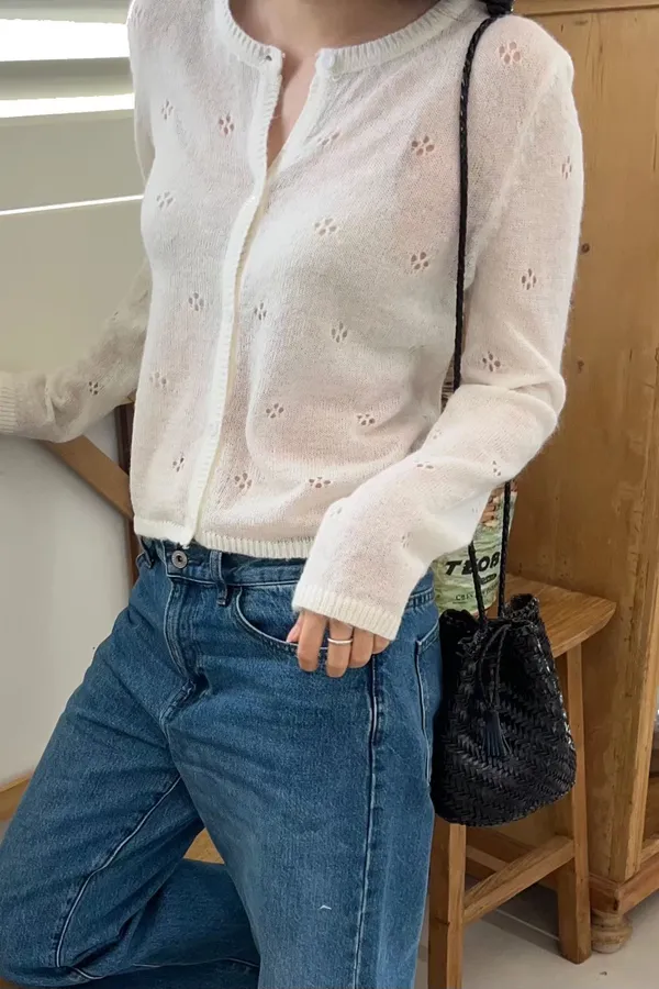 A13 小花裸空羊毛上衣外套