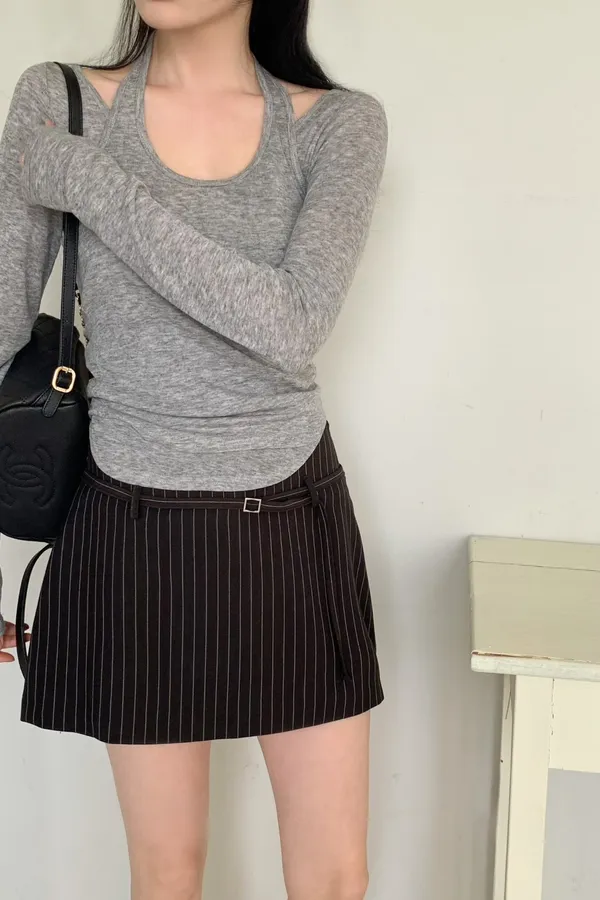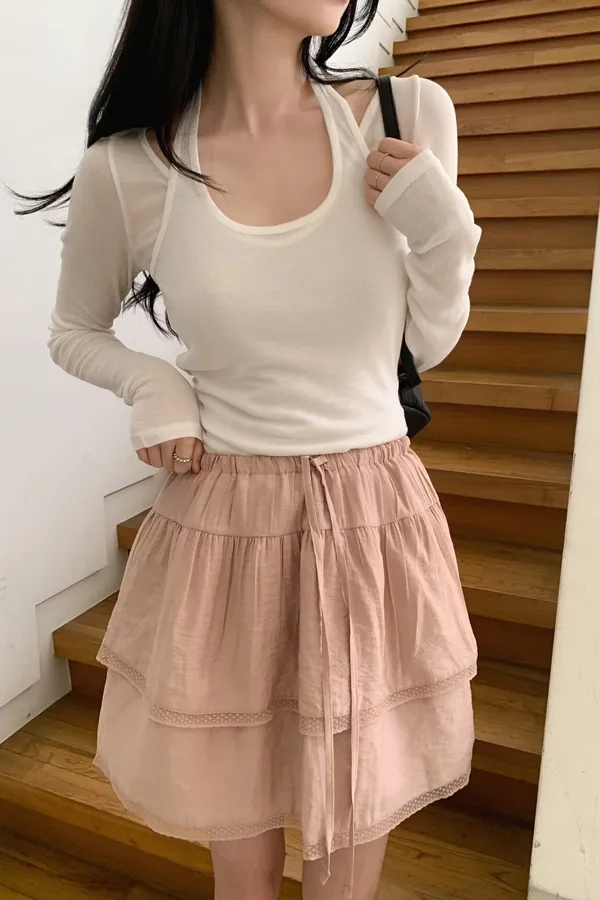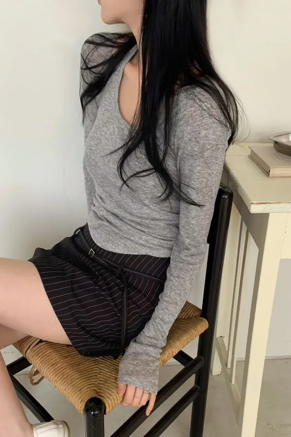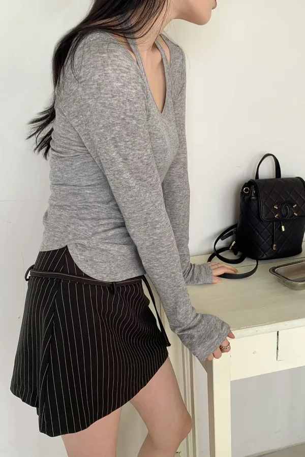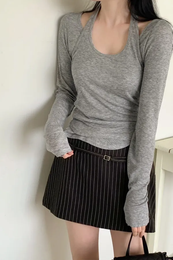 A16 今年必買 繞頸式下圓弧真兩件上衣