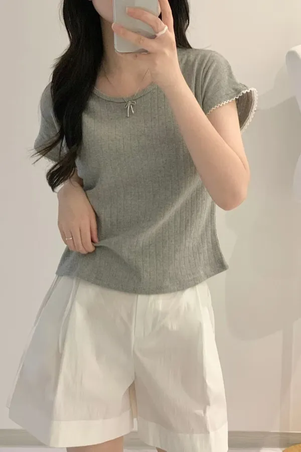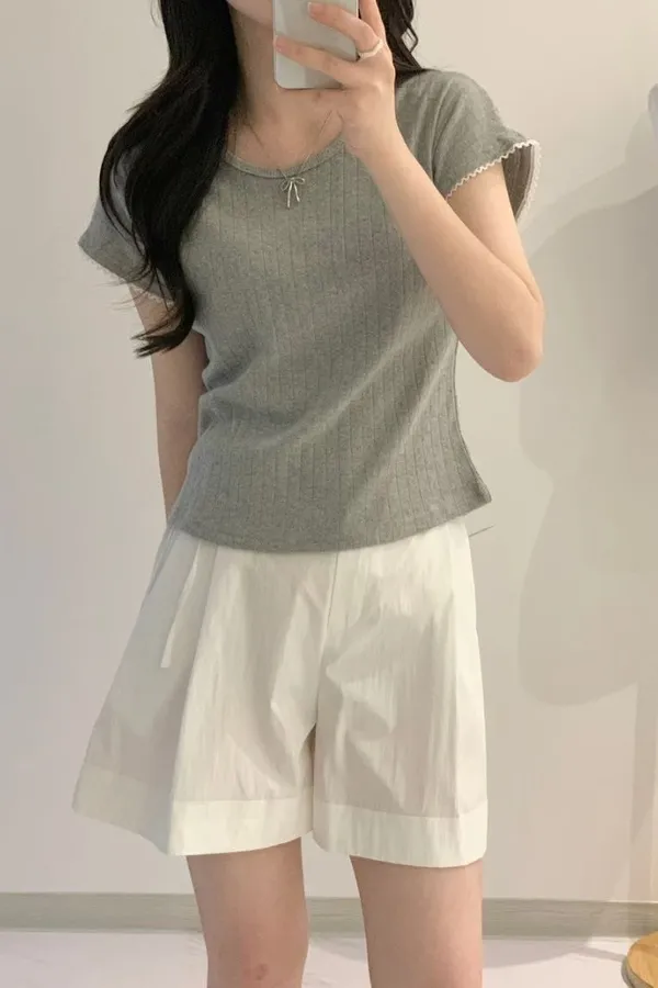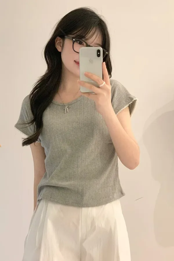 K03 滾邊蕾絲 微裸空彈性上衣