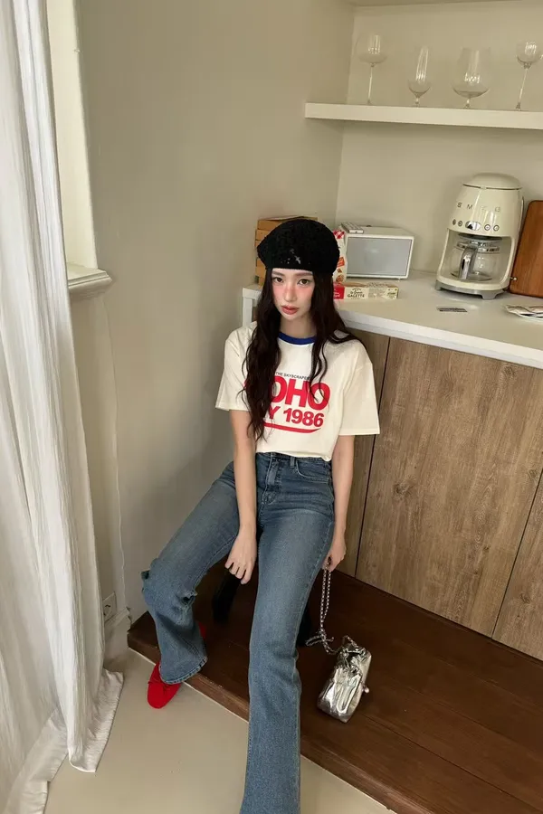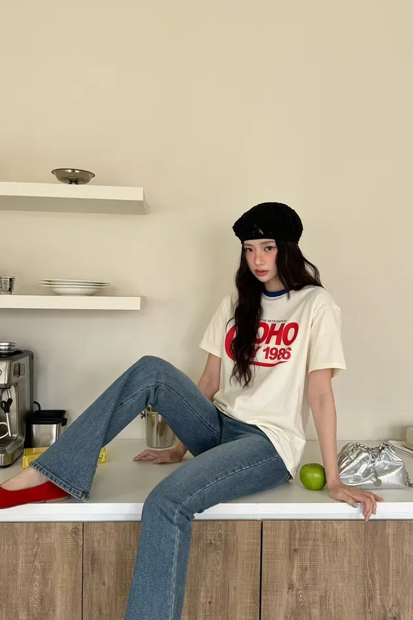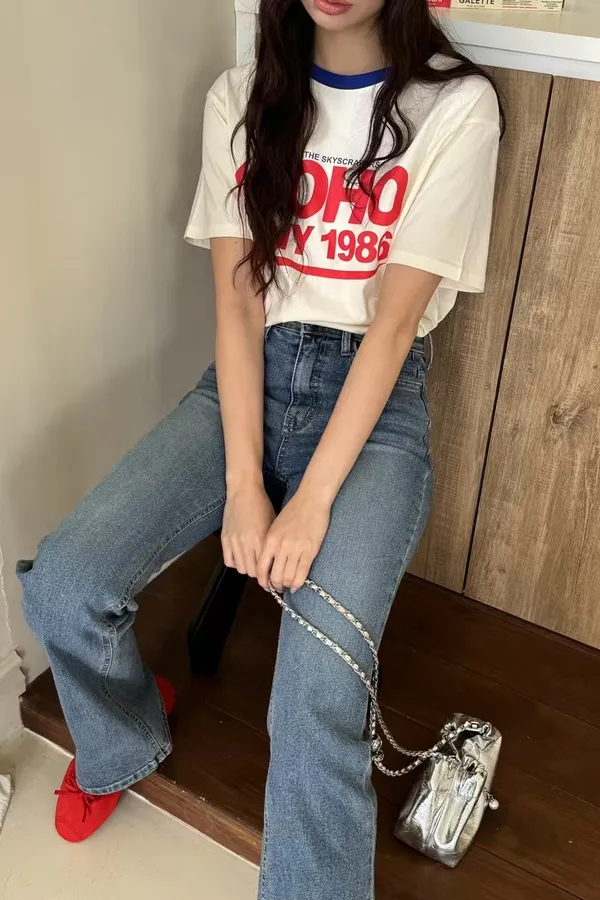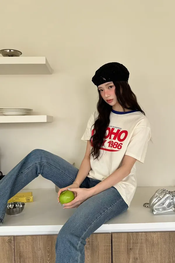 K05 復古風 拼接英文上衣