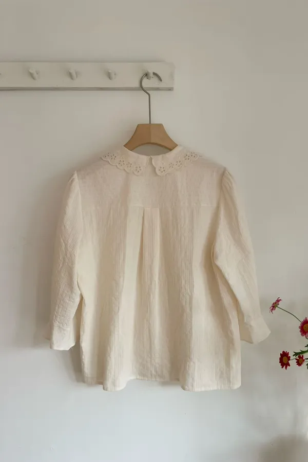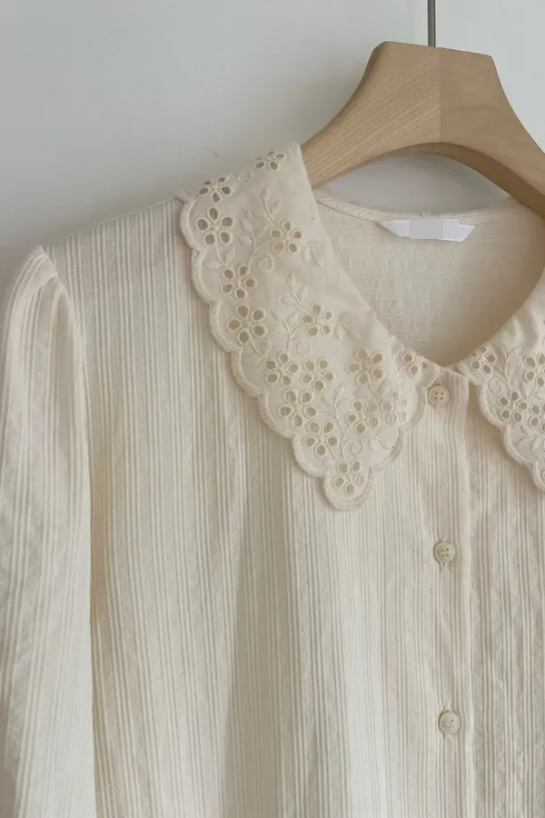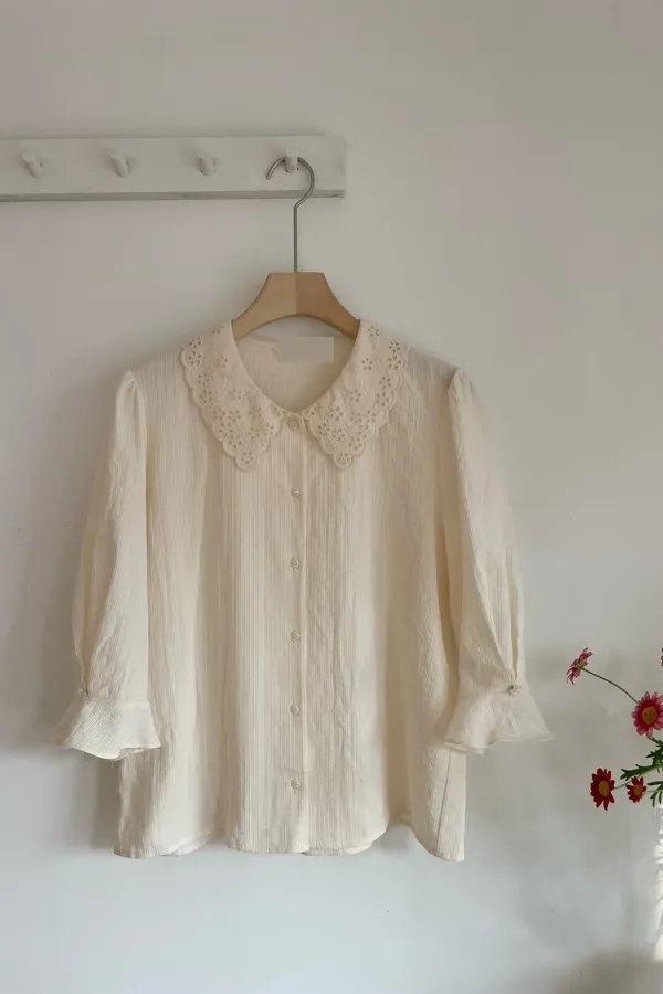 K11 高工藝 領蕾絲袖造型上衣