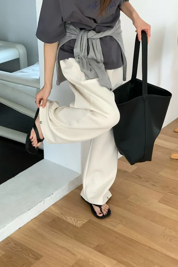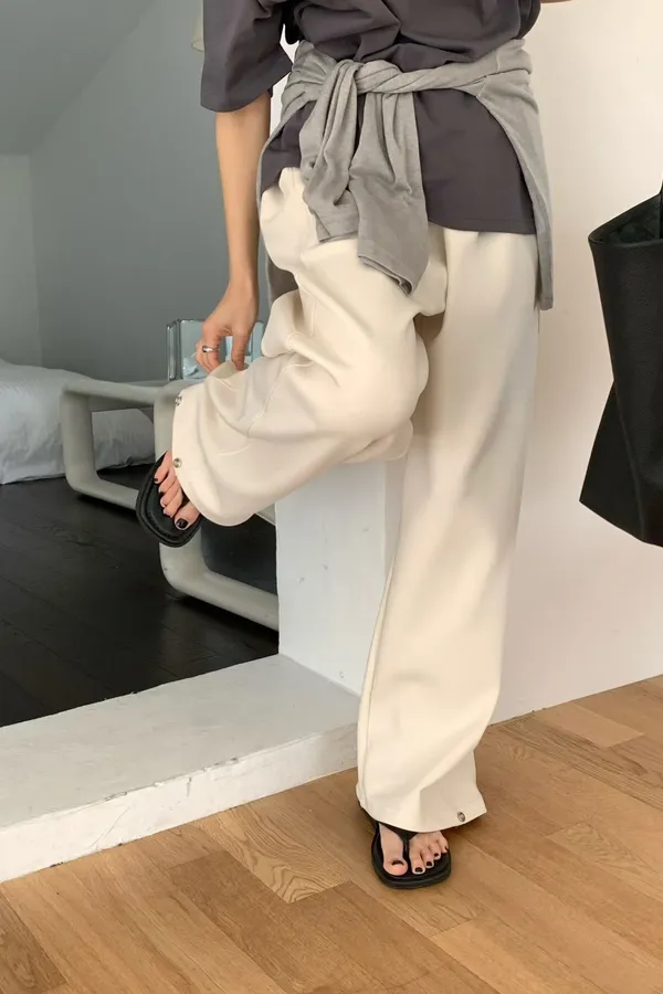 E04 下擺壓釦設計 鬆緊腰休閒褲