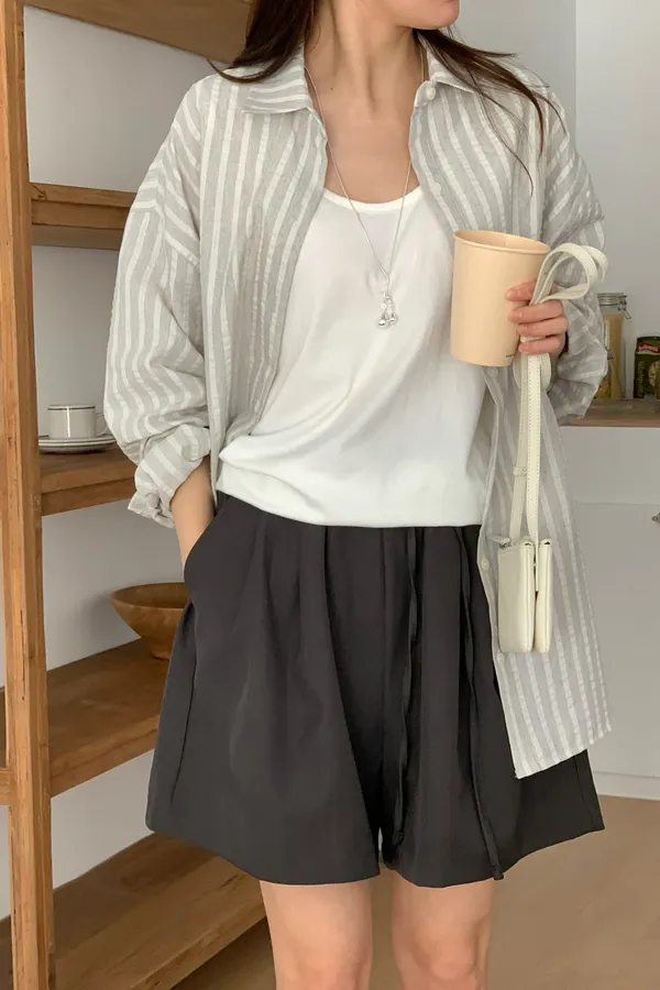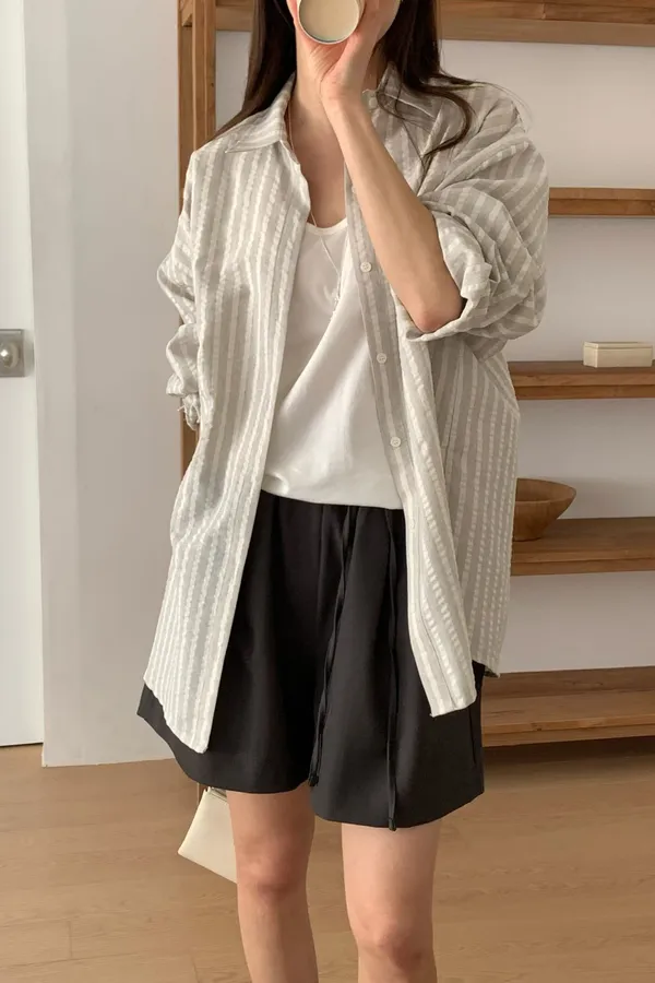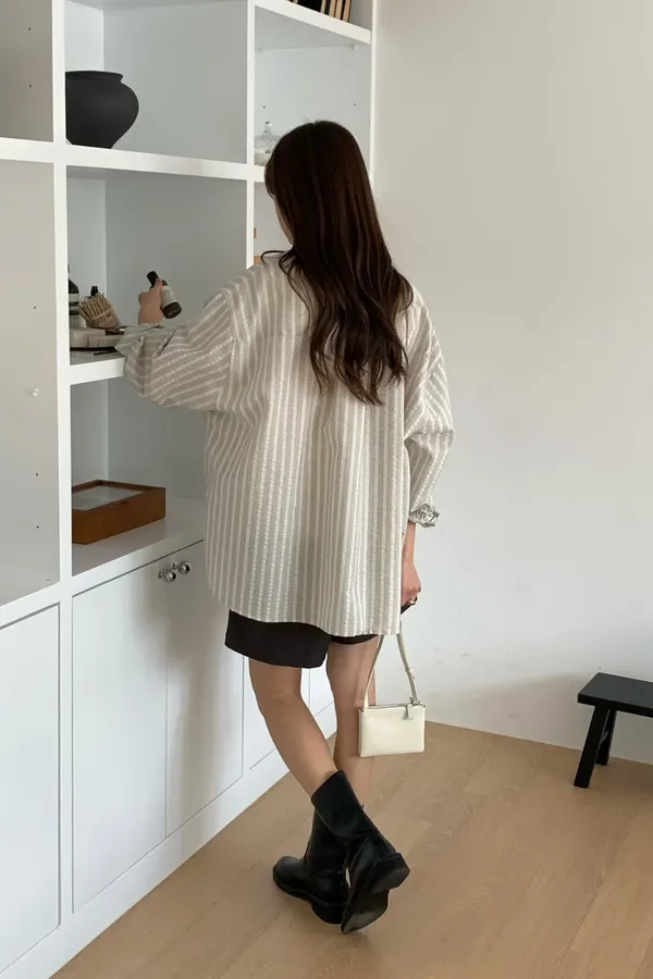 E13 穿搭加分款 直條紋襯衫