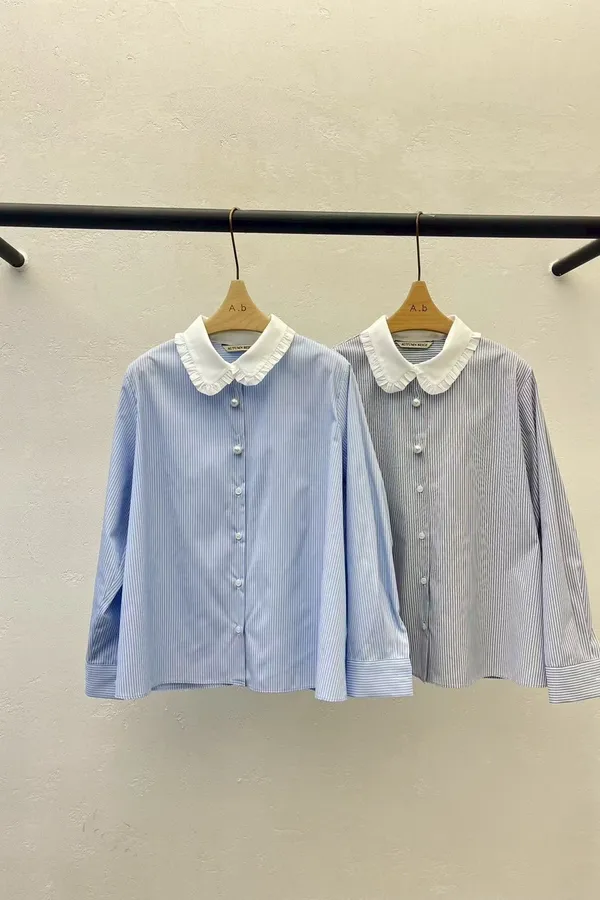B25 配色領直條襯衫