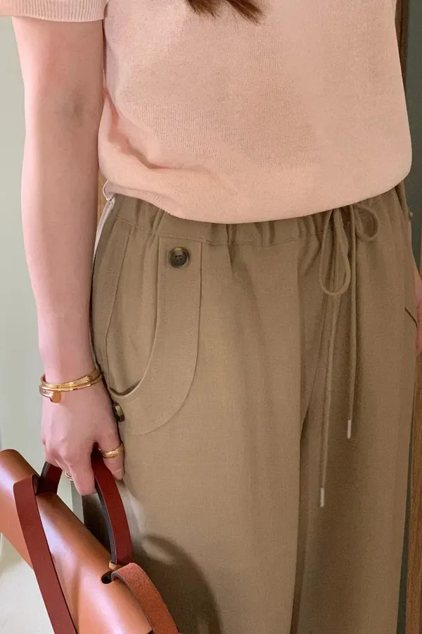 M17 不易皺 口袋造型綁帶休閒褲