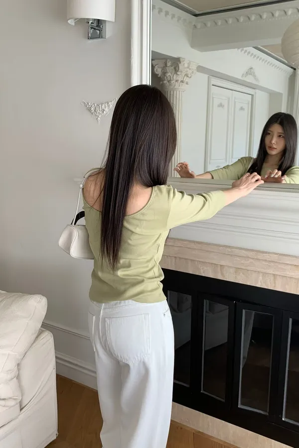 N02 船型領 後背設計七分袖上衣