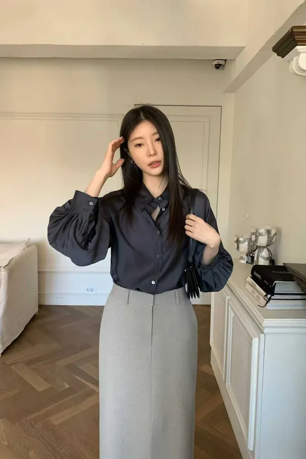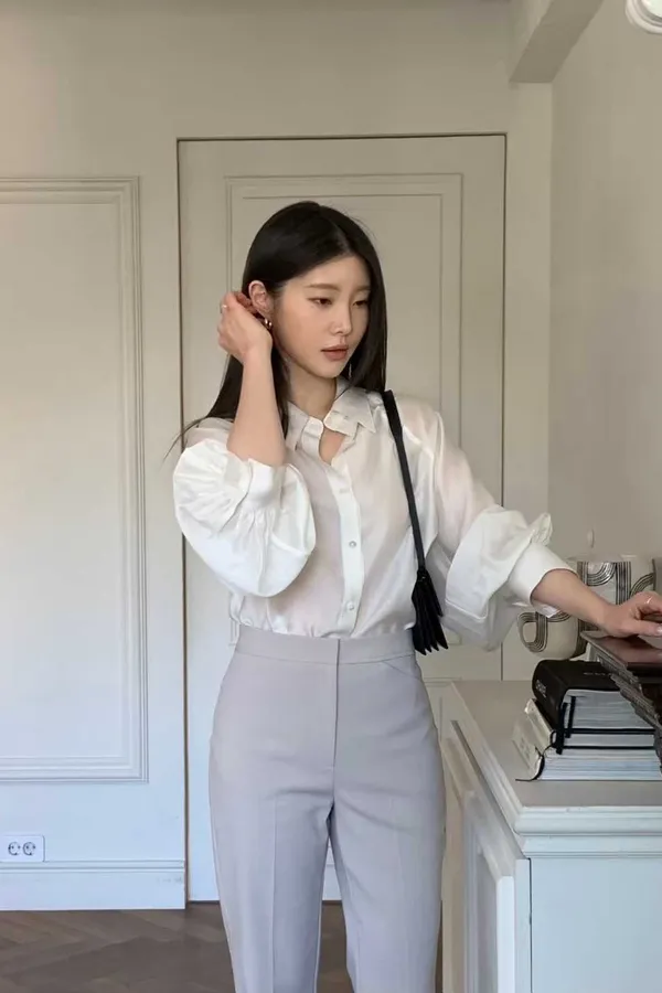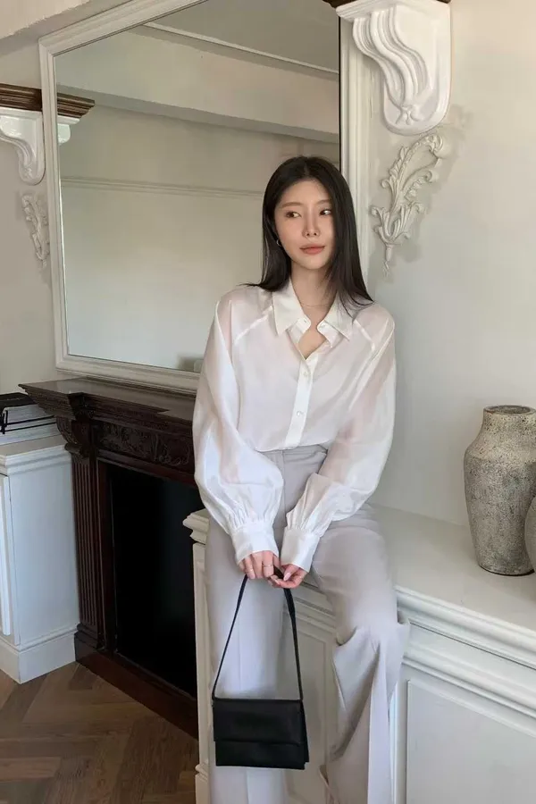 N07 專櫃感 領設計澎澎袖襯衫