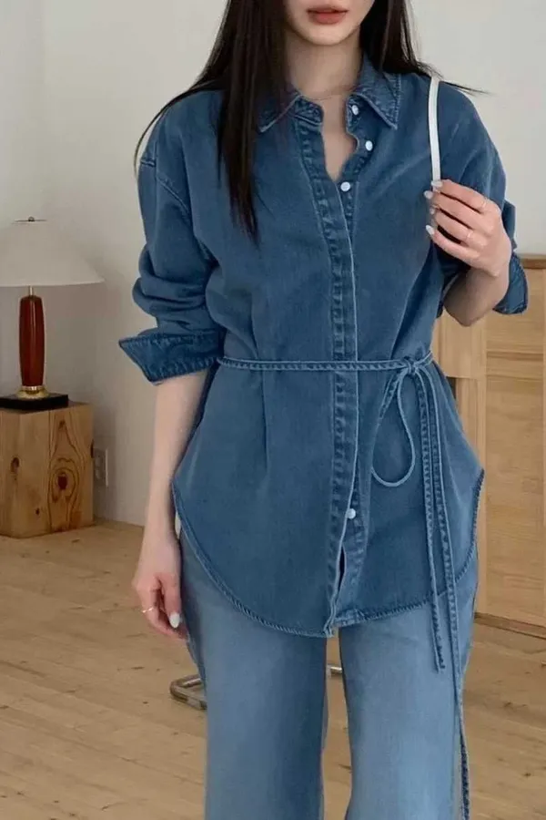 N09 軟QQ 前短後長牛仔襯衫