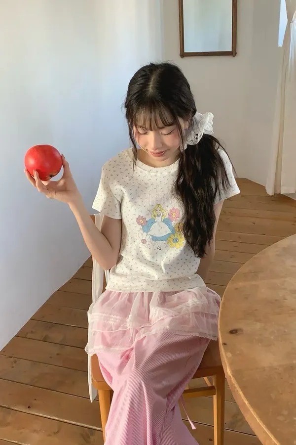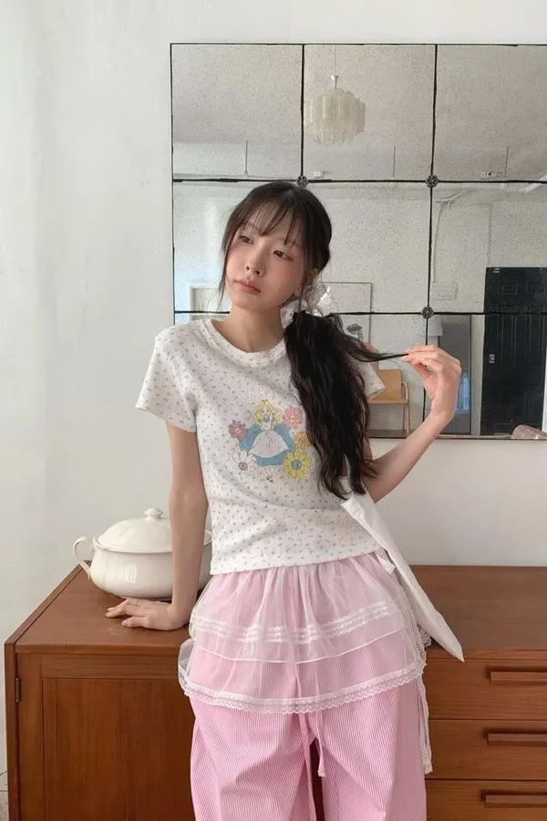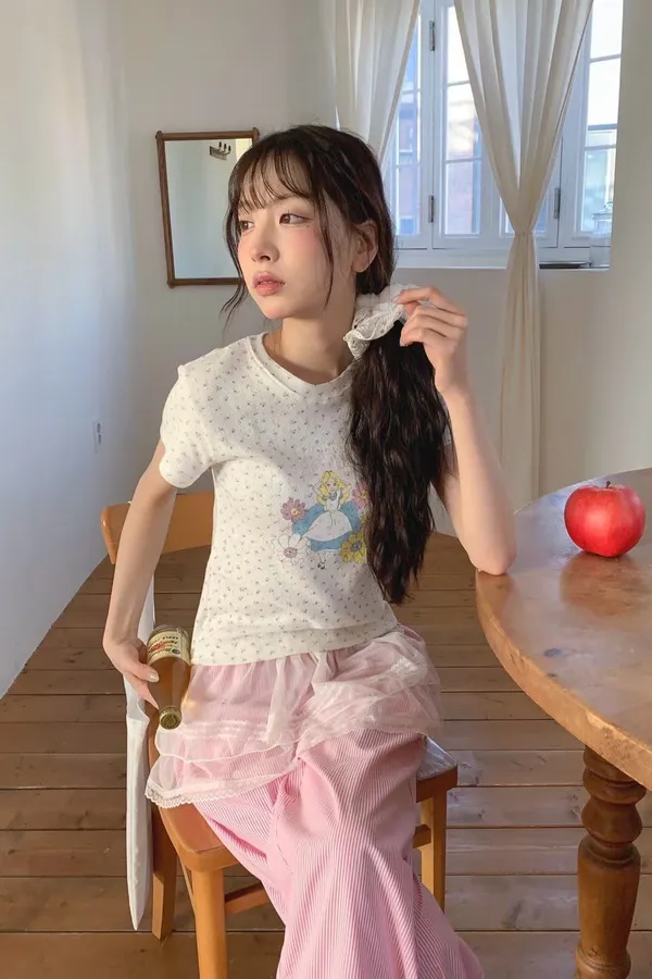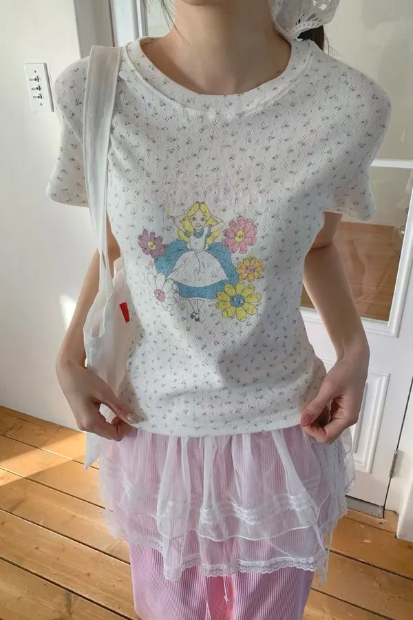 D03 裸空小花 愛麗絲圖案上衣