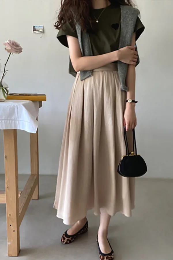 D05 韓國網拍熱銷款 腰鬆緊打摺裙