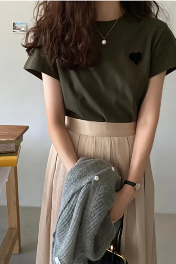 D06 愛心圖案素面上衣