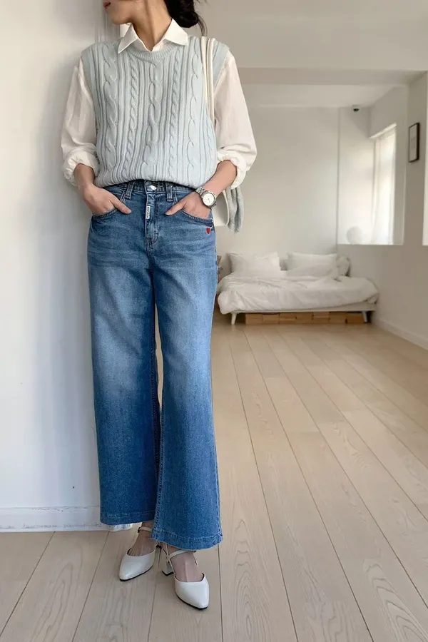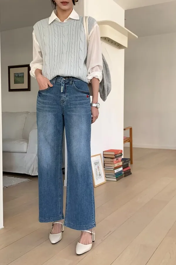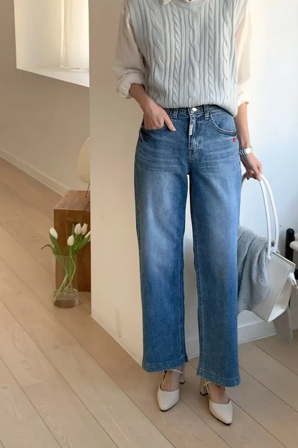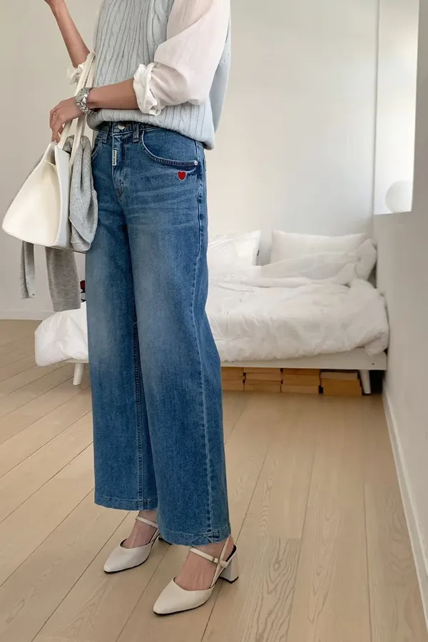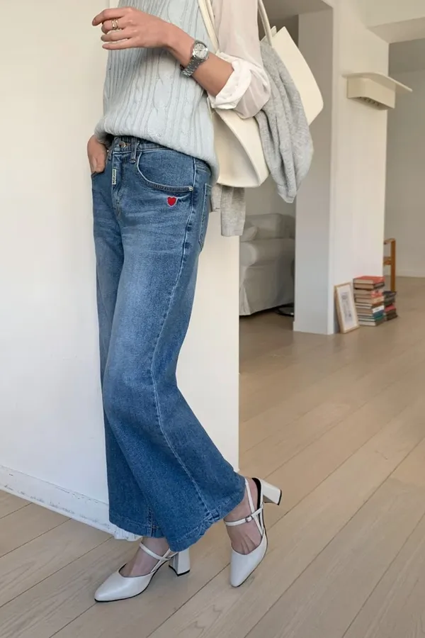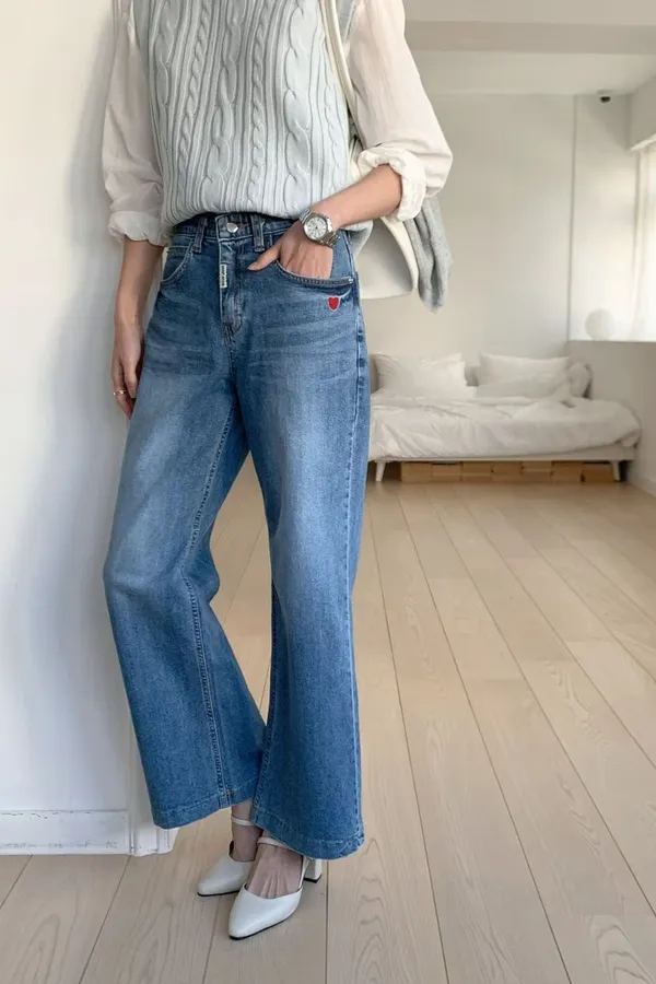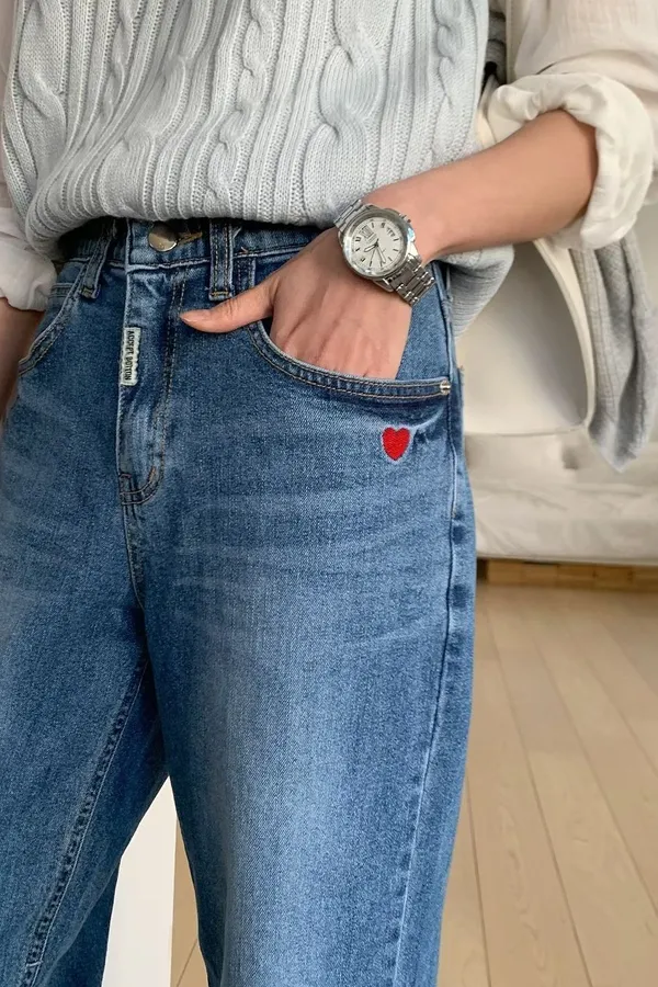 D09 愛心刺繡圖案鬆緊牛仔褲