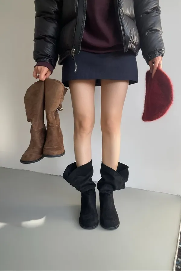 D16 麂皮圓頭堆堆馬靴款襯衫