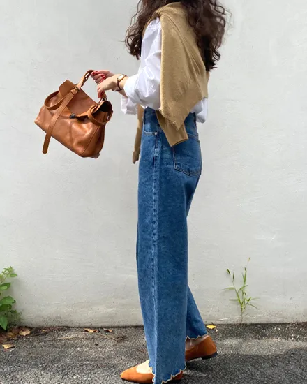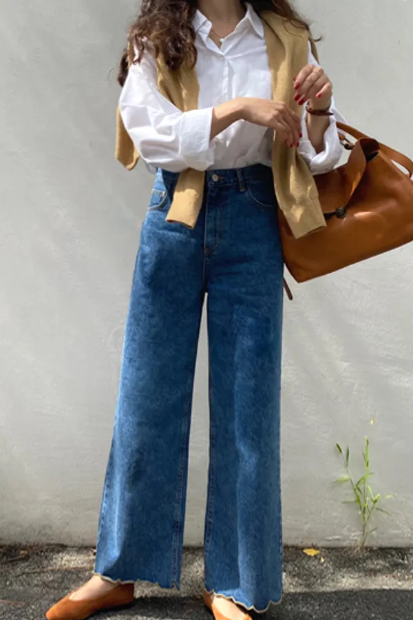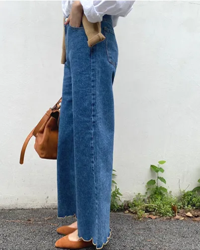 40307 獨家款 下擺滾邊波浪牛仔褲