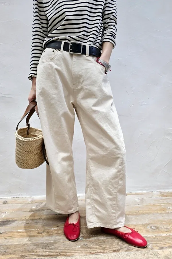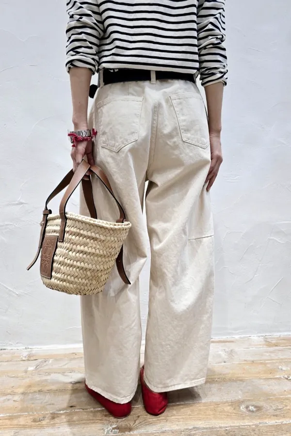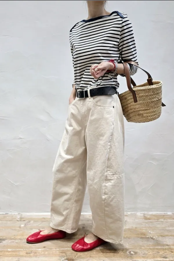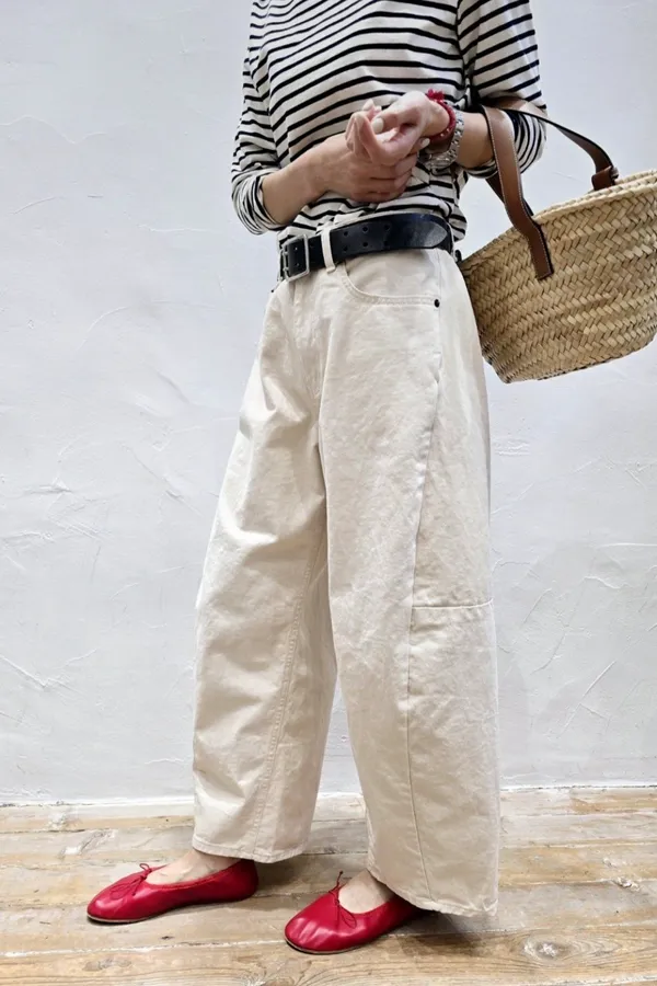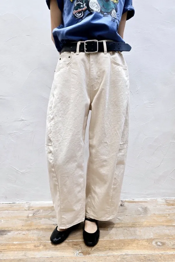 V06 奶油色 拼接舒適氣球休閒褲