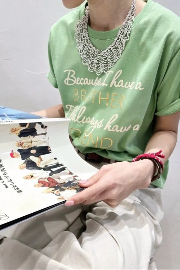 V07 亮亮凸字英文設計上衣