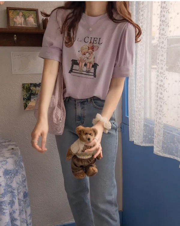61603 夏季韓國網拍no.1 小情侶公主袖上衣