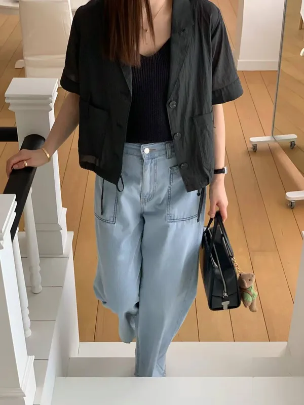 Mu16 不佔空間 輕薄雙口袋抽繩外套