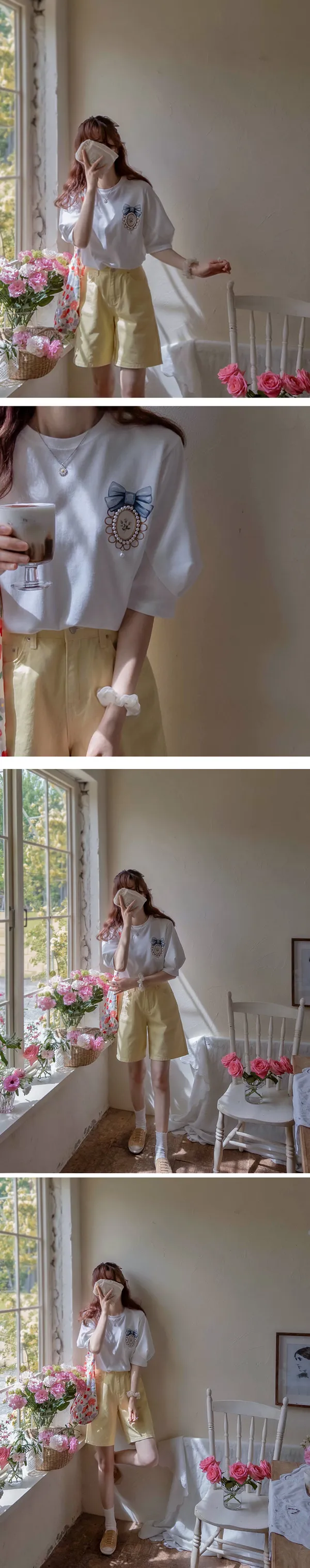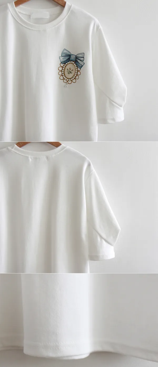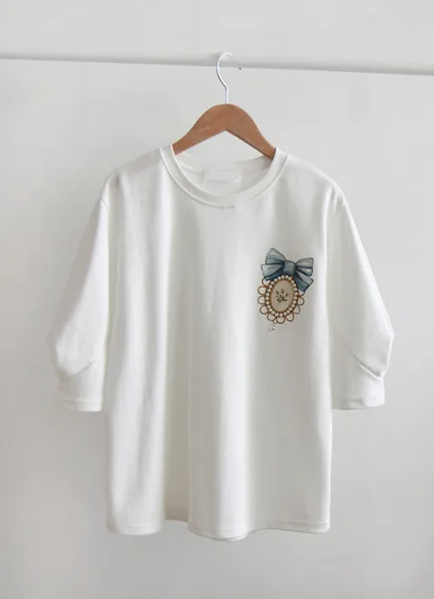 62814 胸口珠珠蝴蝶結袖抓皺上衣