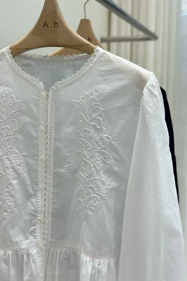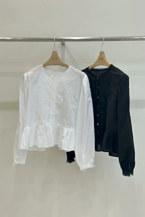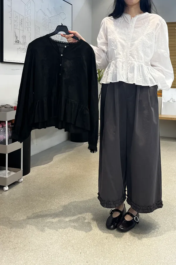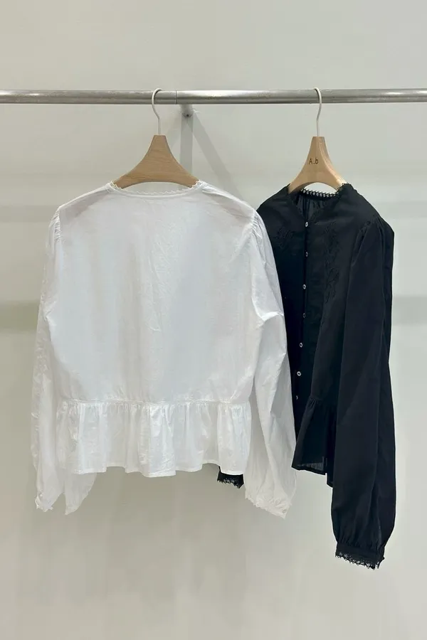 A21 高工藝 雕花蕾絲下擺波浪上衣