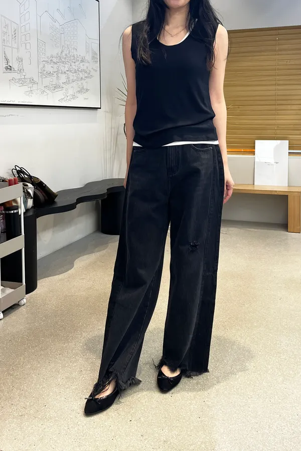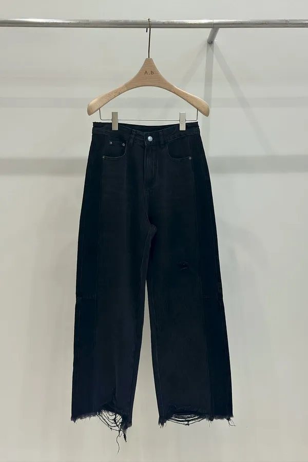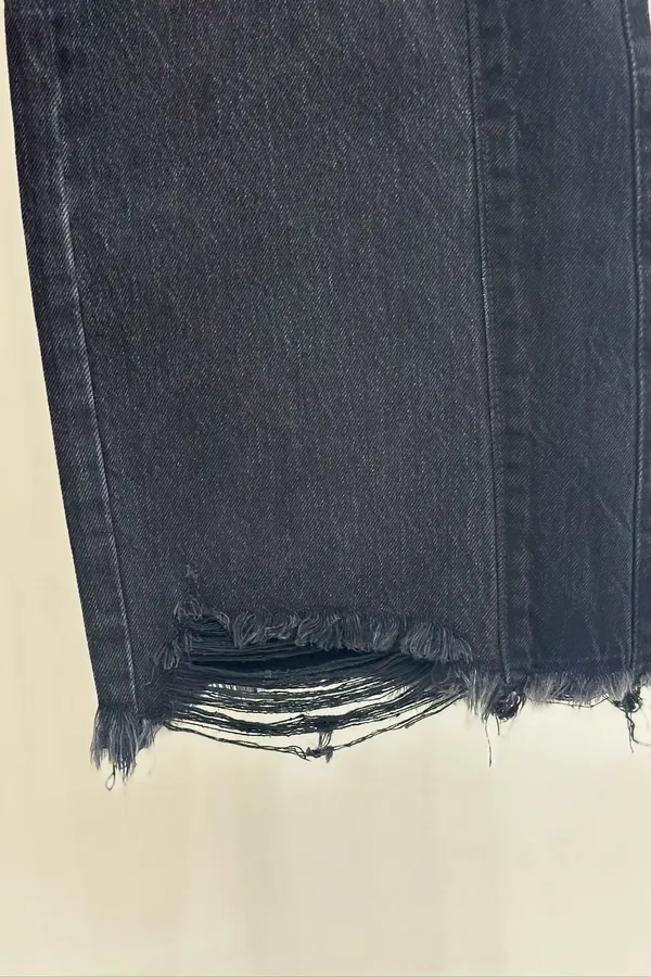 A24 超瘦!下擺鬚鬚 黑色牛仔褲