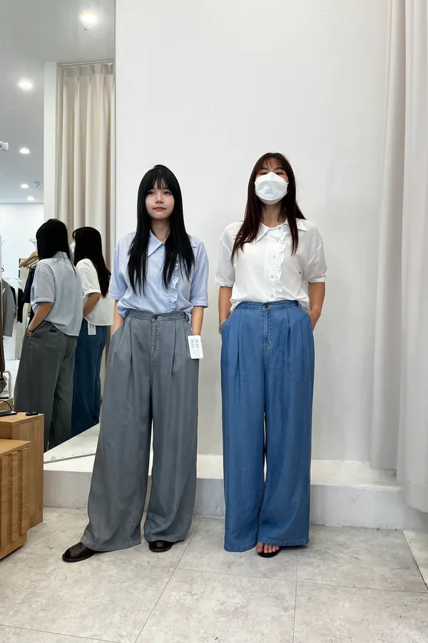 F08 天絲 仿牛仔壓折寬褲
